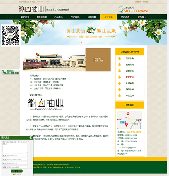 黃山市徽山食用油業有限公司是一家專業以油茶系列產品開發為主,集科研、生產加工、貿易為一體的國家經濟林產業化龍頭企業和安徽省林業產業化龍頭企業。