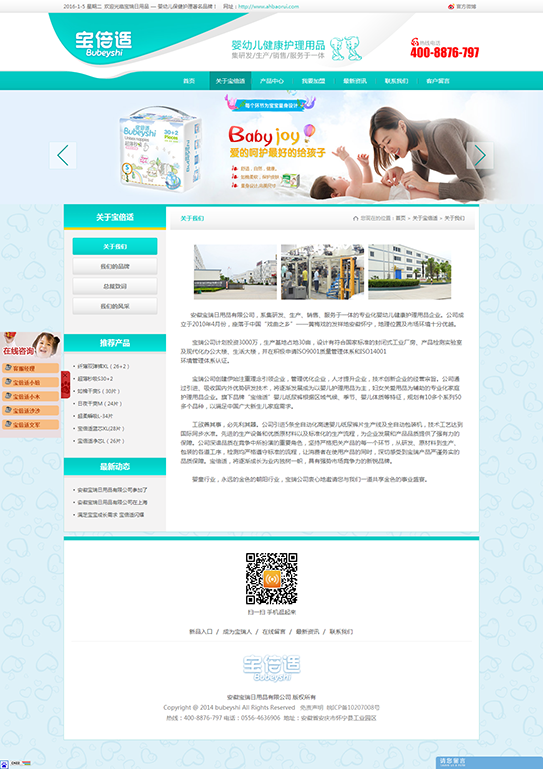安徽寶瑞日用品有限公司,系集研發、生產、銷售、服務于一體的專業化嬰幼兒健康護理用品企業。公司成立于2010年4月份,座落于中國“戲曲之鄉”——黃梅戲的發祥地安徽懷寧,地理位置及市場環境十分優越。