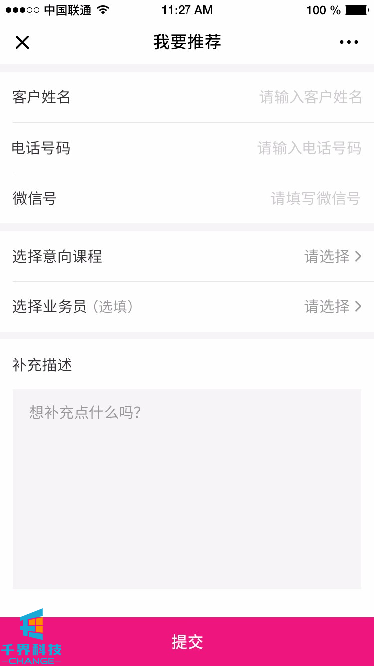 千界致力于為企業(yè)提供全面的營(yíng)銷(xiāo)解決方案,通過(guò)平臺(tái)搭建幫助企業(yè)構(gòu)建個(gè)性的微信營(yíng)銷(xiāo)體系,實(shí)現(xiàn)線(xiàn)上線(xiàn)下互通,助力企業(yè)快速步入微信營(yíng)銷(xiāo)時(shí)代。