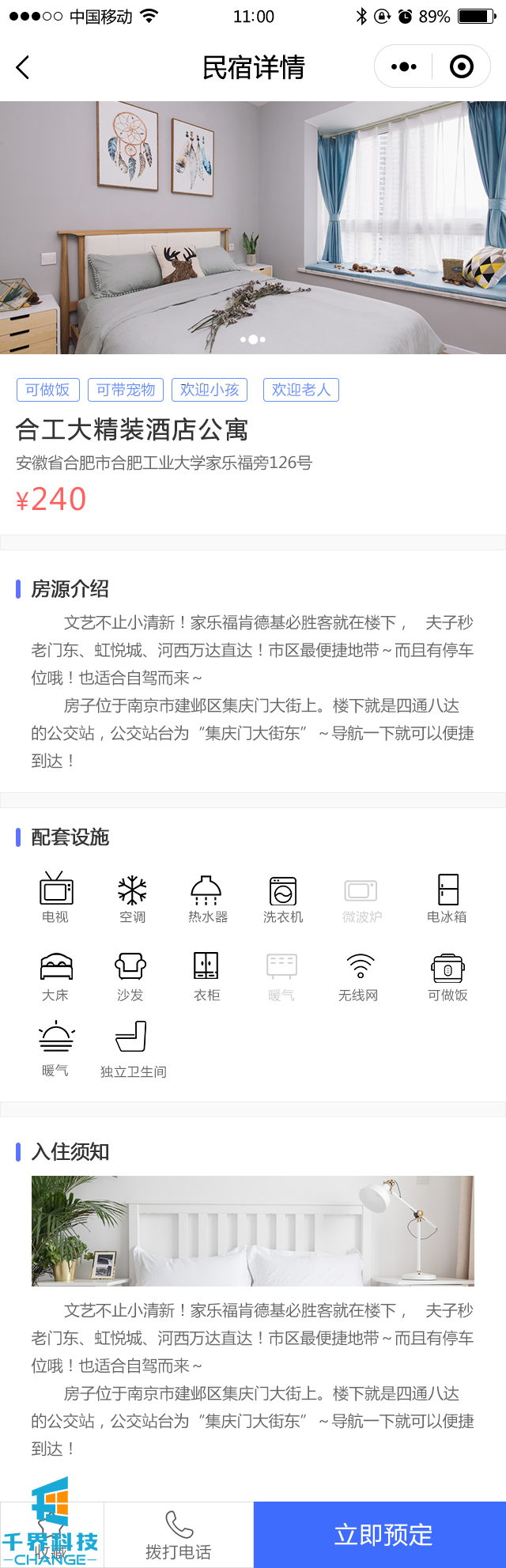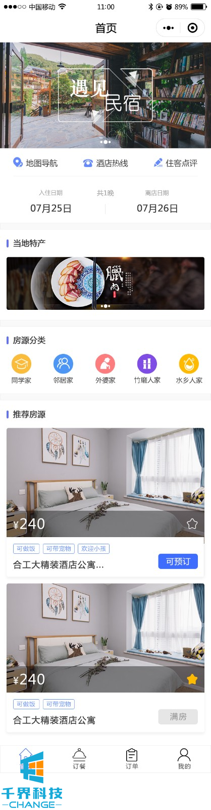 該項目是一個民宿預定的微信小程序。里面包含在線訂房,在線支付,訂單管理,線上商城,在線點餐等功能