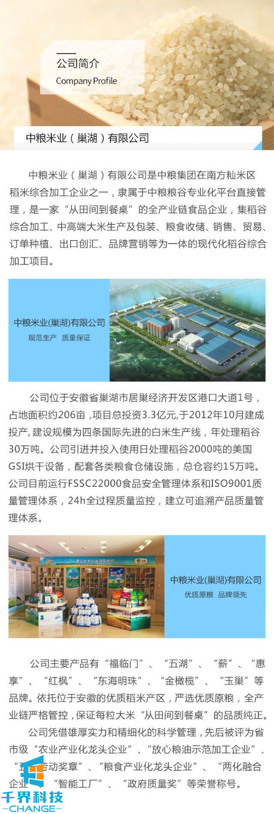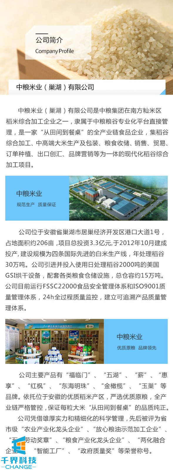 該項(xiàng)目是中糧集團(tuán)巢湖米業(yè)定制的一個(gè)微官網(wǎng)。