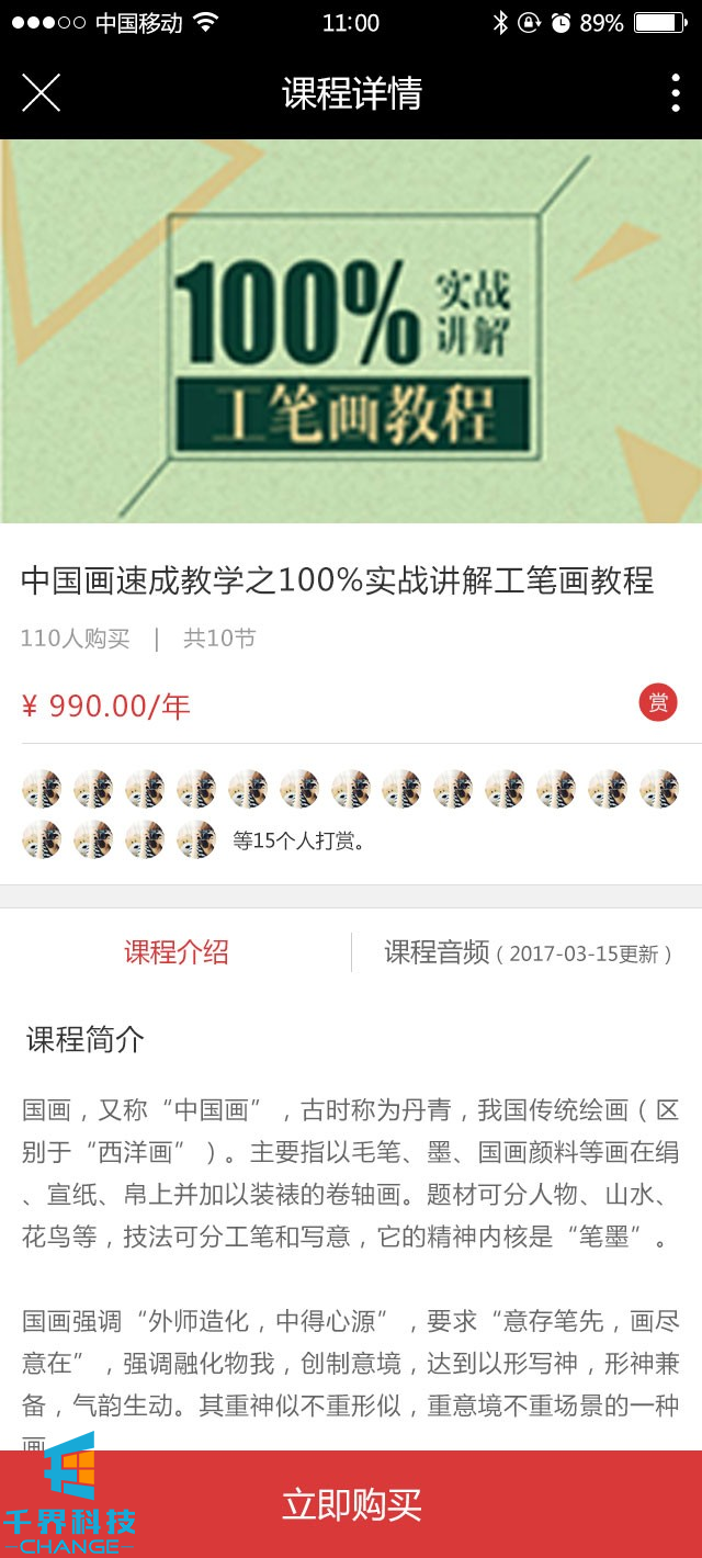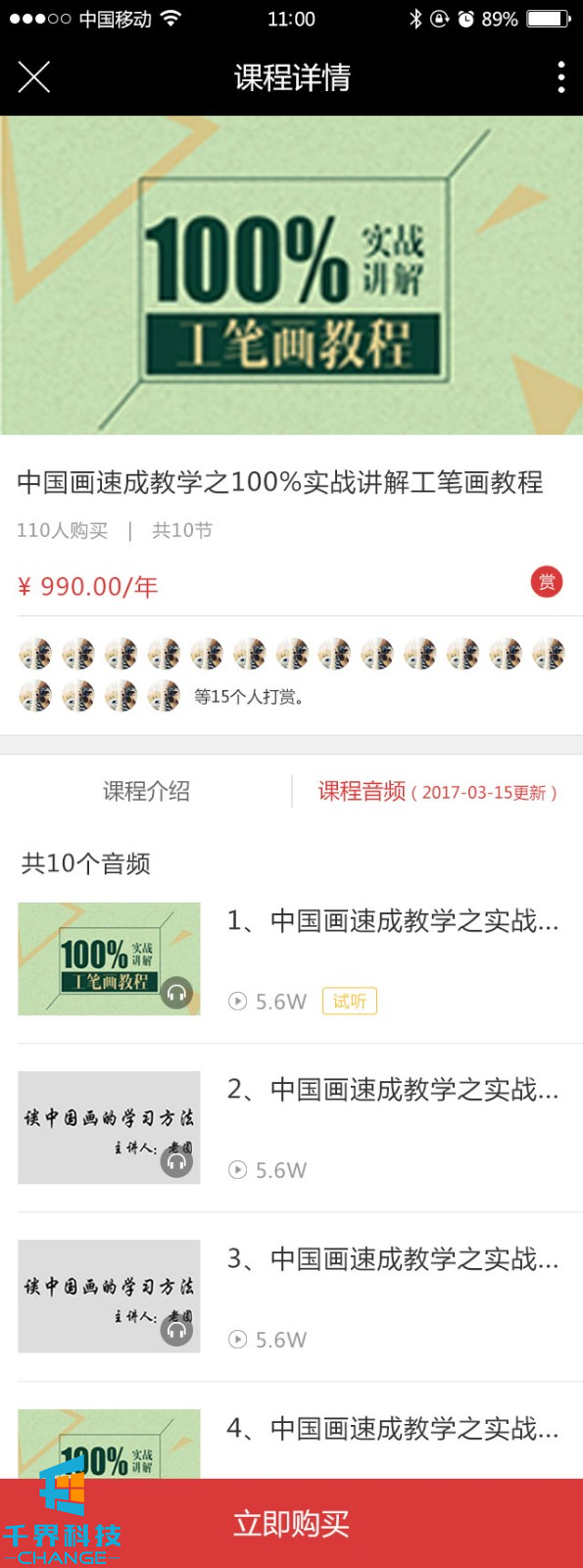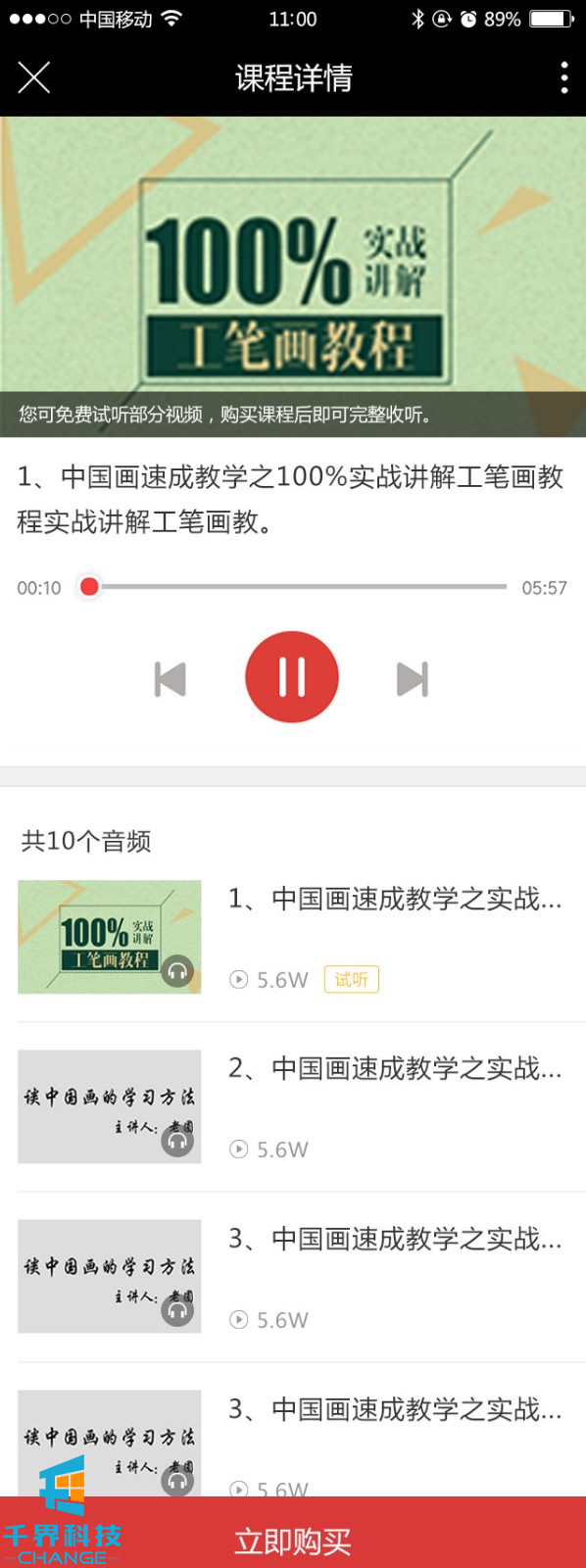 該項目是一個付費聽音頻課程的微信公眾號。里面包含音頻課程管理,在線播放,試聽功能,在線購買,訂單管理,播放記錄,會員中心等功能。