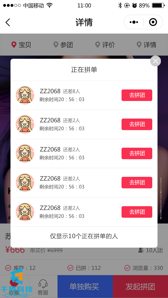 該項(xiàng)目是當(dāng)下很火的拼團(tuán)商城微信公眾號(hào),包含商品分類,產(chǎn)品詳情,正在拼單,還差多少人開團(tuán),可單獨(dú)購買,可參與拼團(tuán),剩余時(shí)間顯示,達(dá)到拼團(tuán)人數(shù)便可開團(tuán);