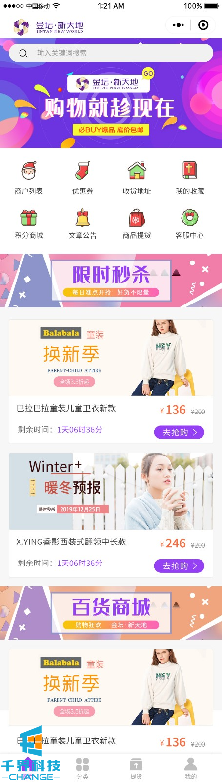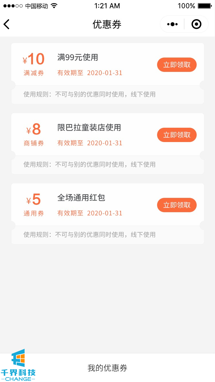 商圈整合小程序,主要是一個商城形式的,優惠券發放,線上購物,線下商家核銷,積分商城兌換禮品。
