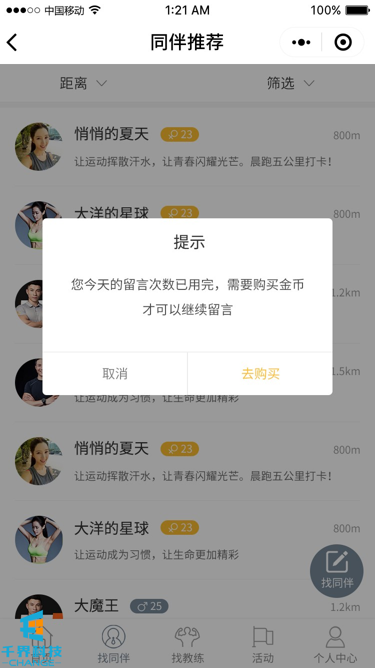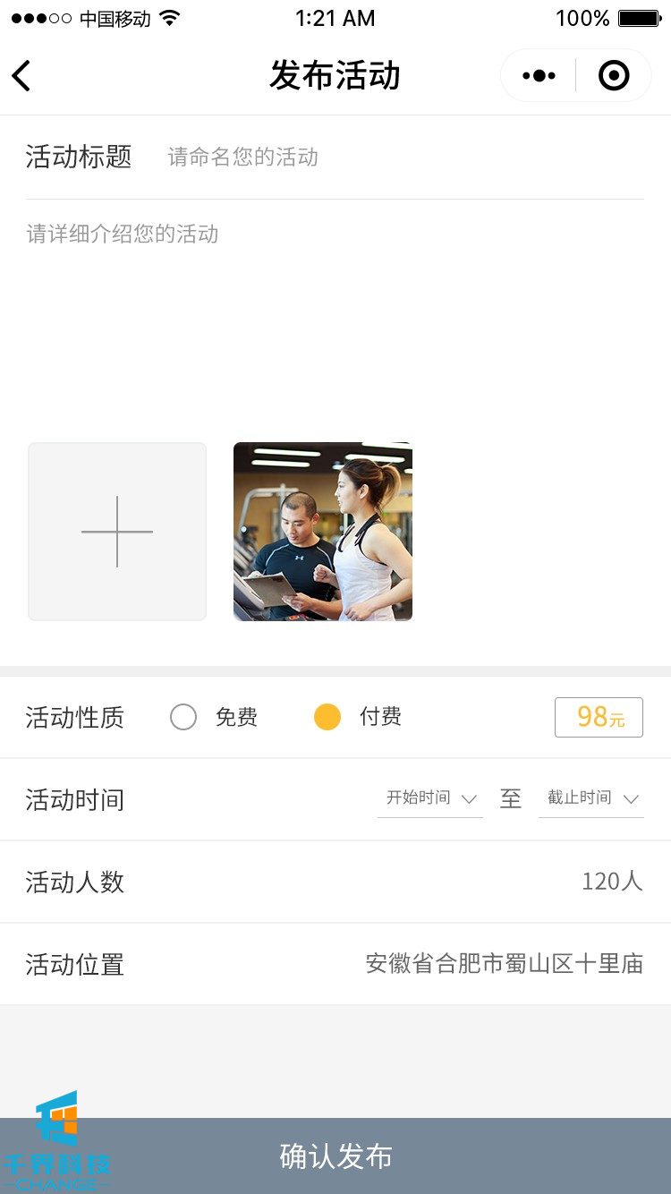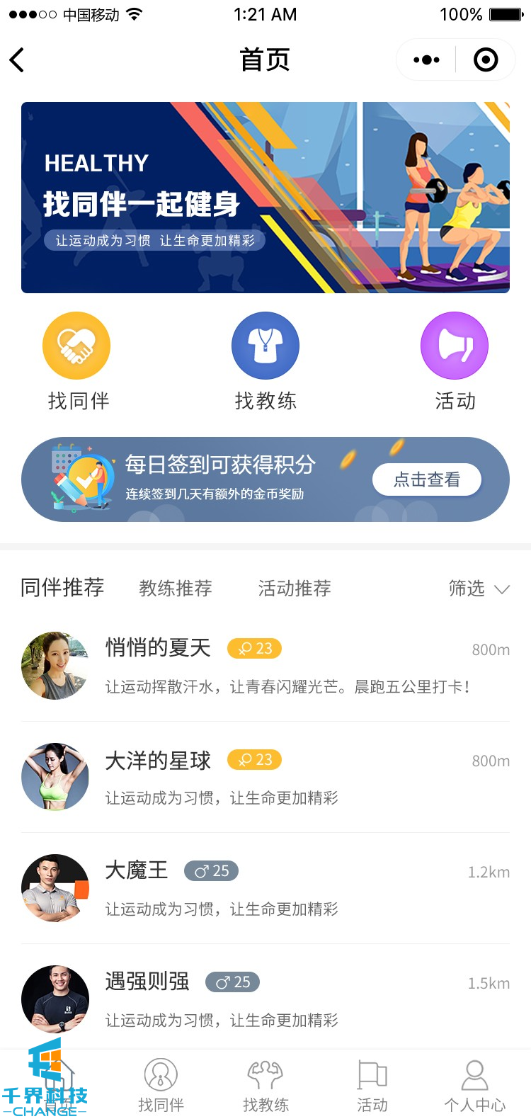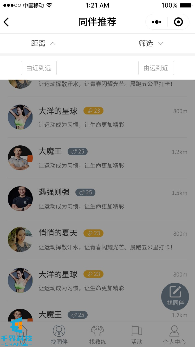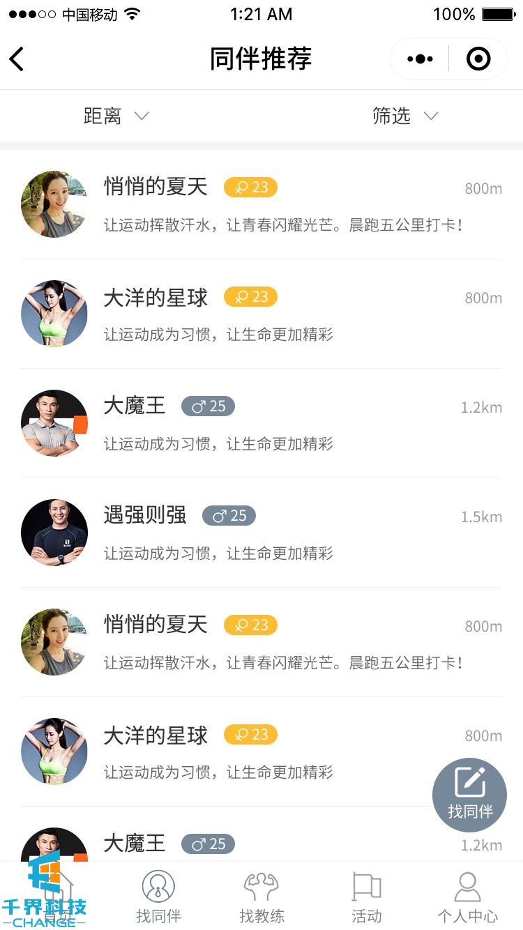 項目名稱:來次健身運動社交圈 項目類型:小程序