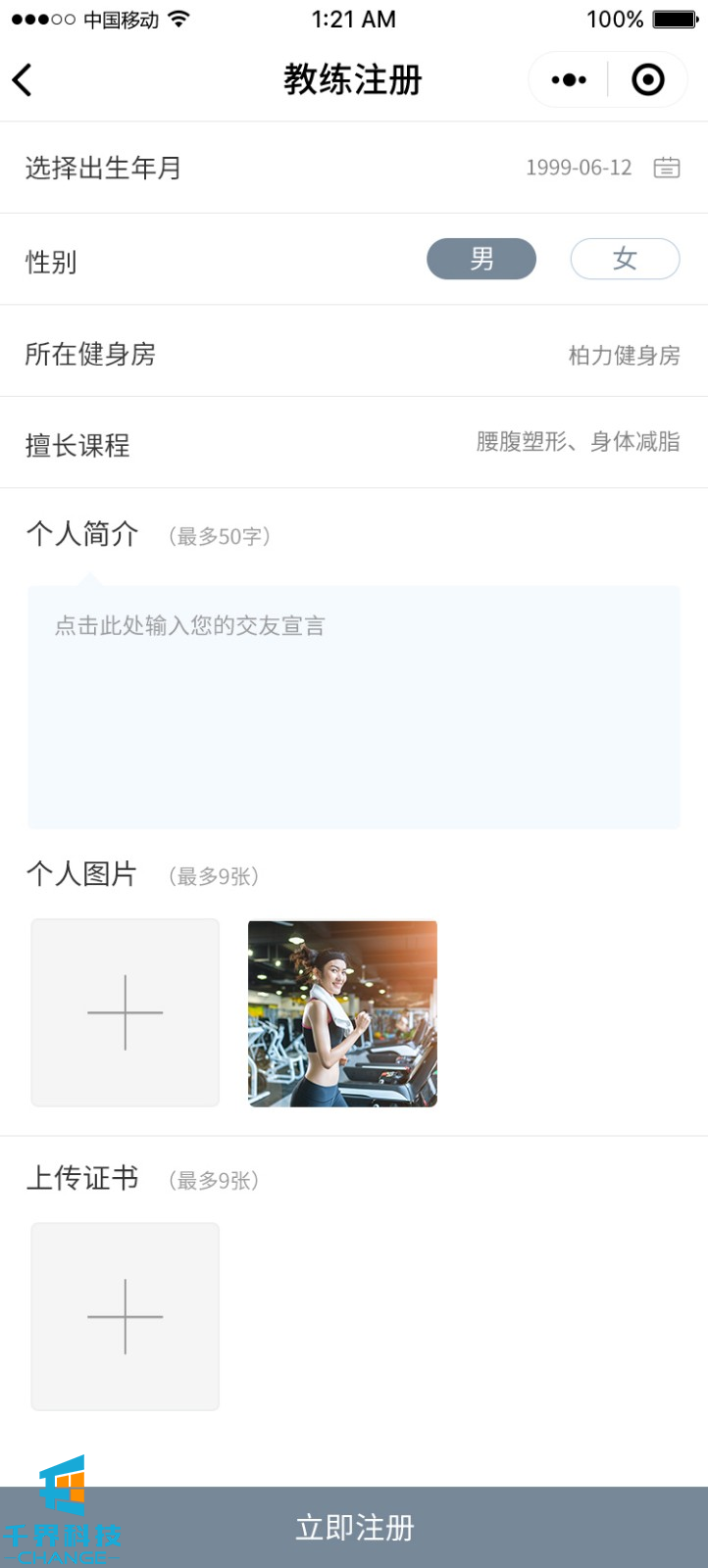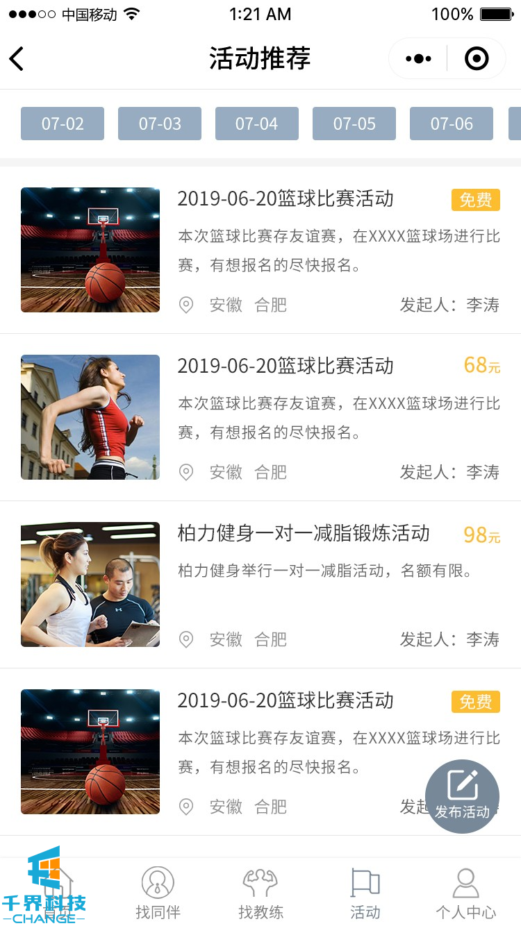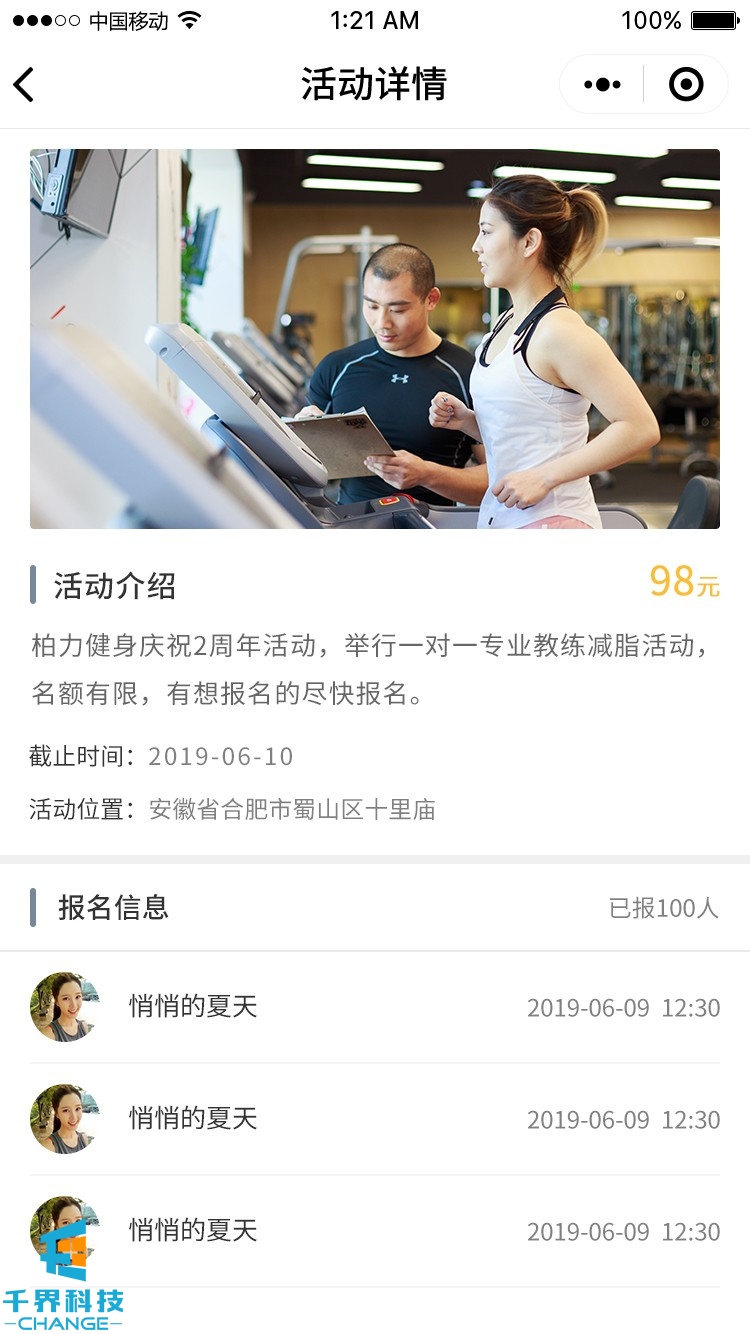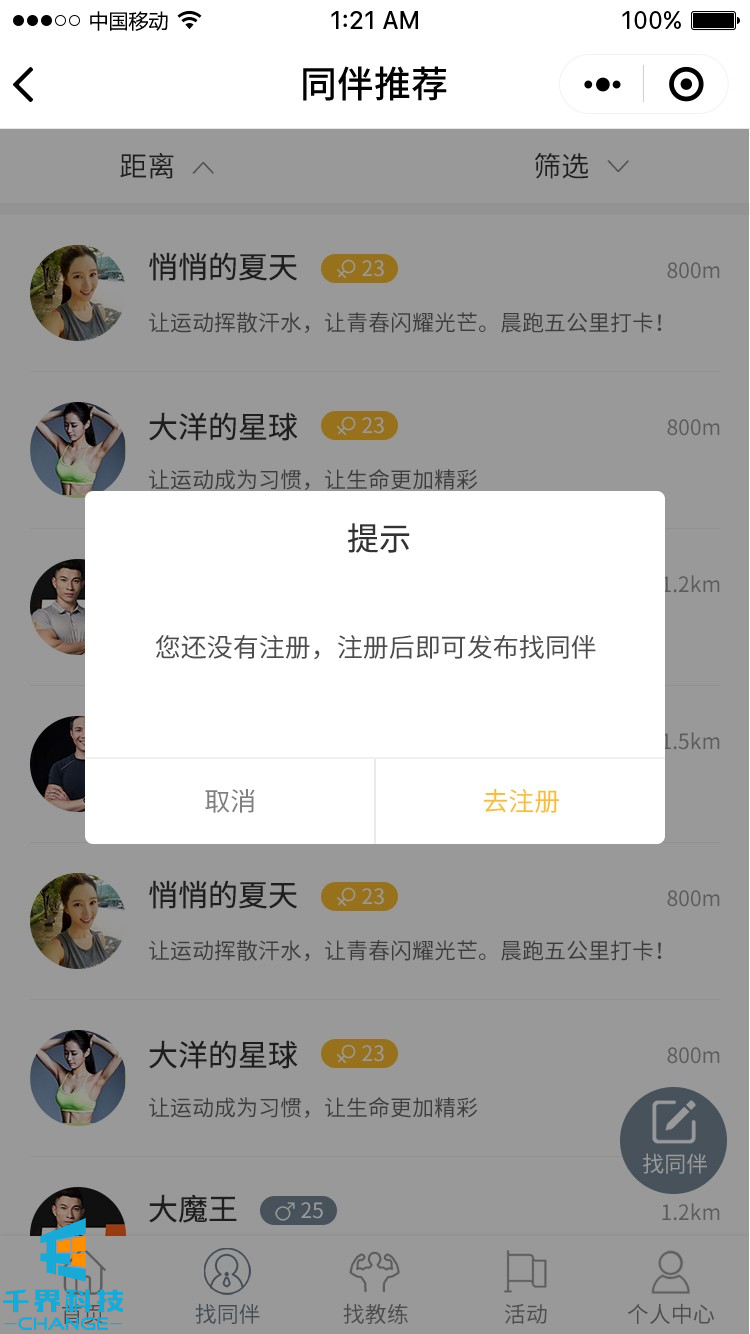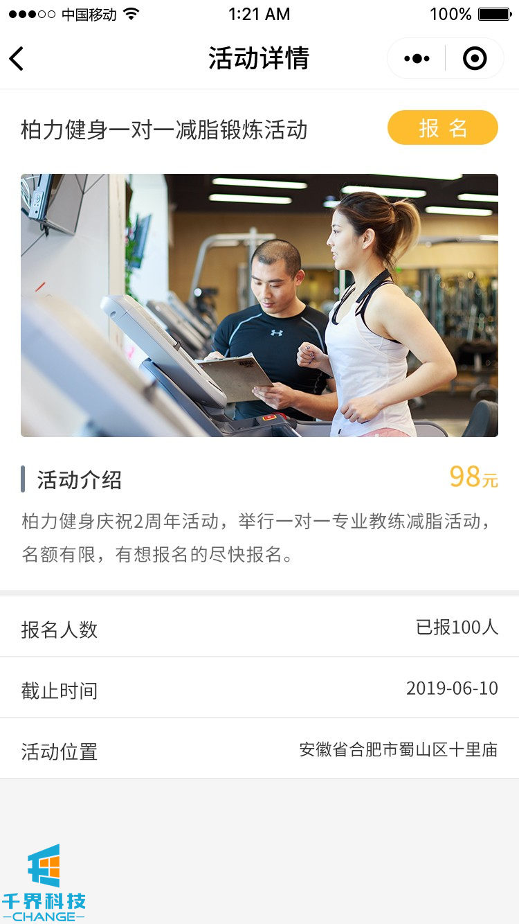 項目名稱:來次健身運動社交圈 項目類型:小程序