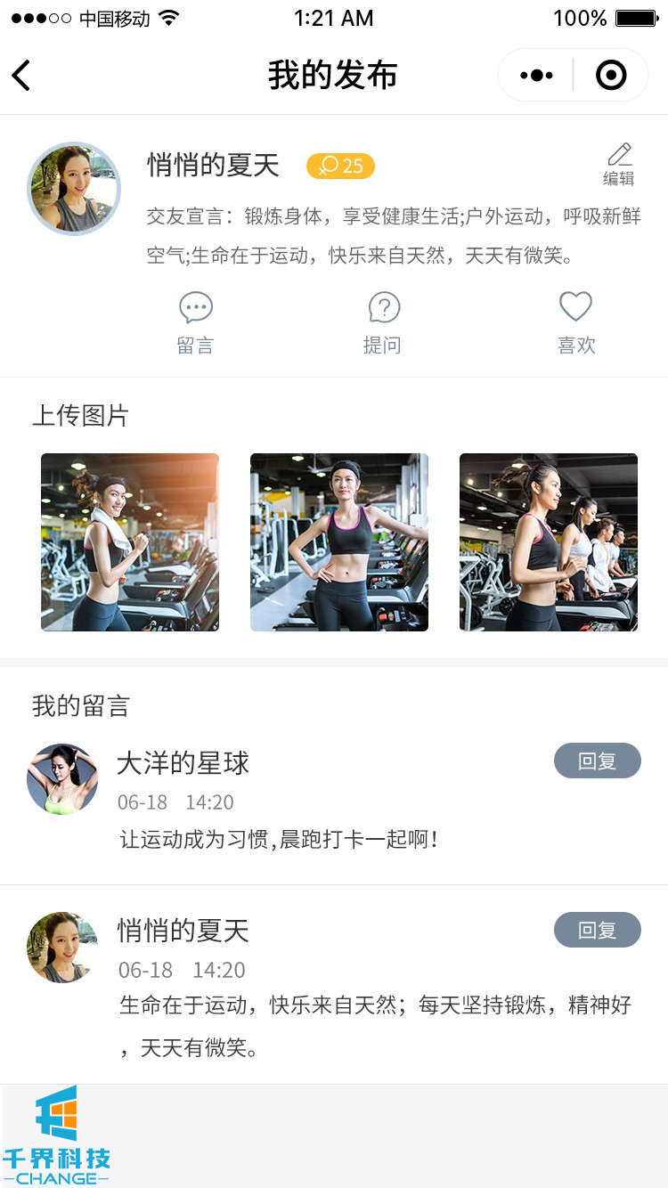 該項目是運動健身社交的小程序,包含論壇、社交、在線發布、在線交友、附件的人等等