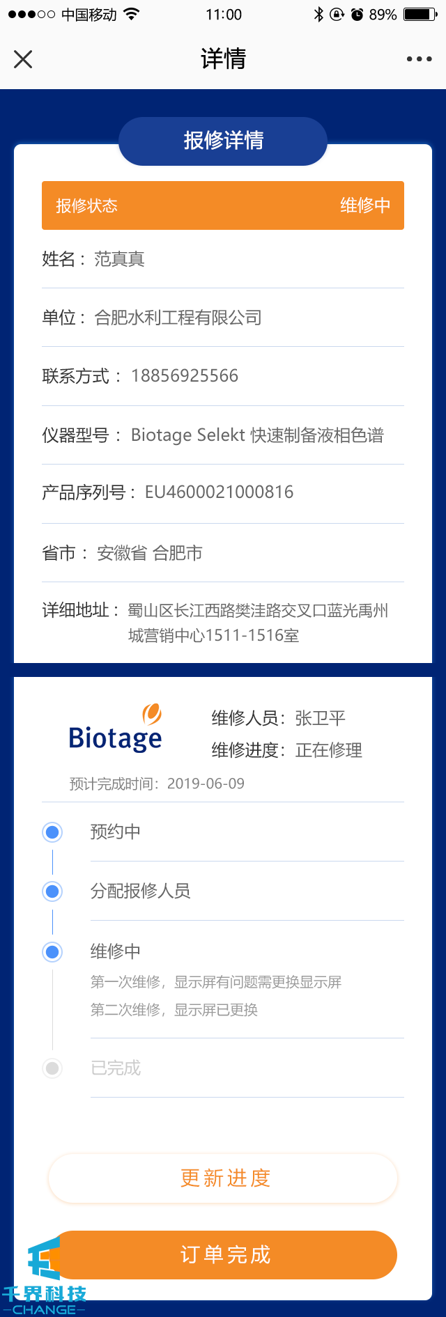 該項目是一個針對合作客戶使用的在線報修系統。里面包含客戶登錄、在線報修、客戶資料管理、報修進度查詢、管理員分配訂單、工程師維修、進度維護等功能。