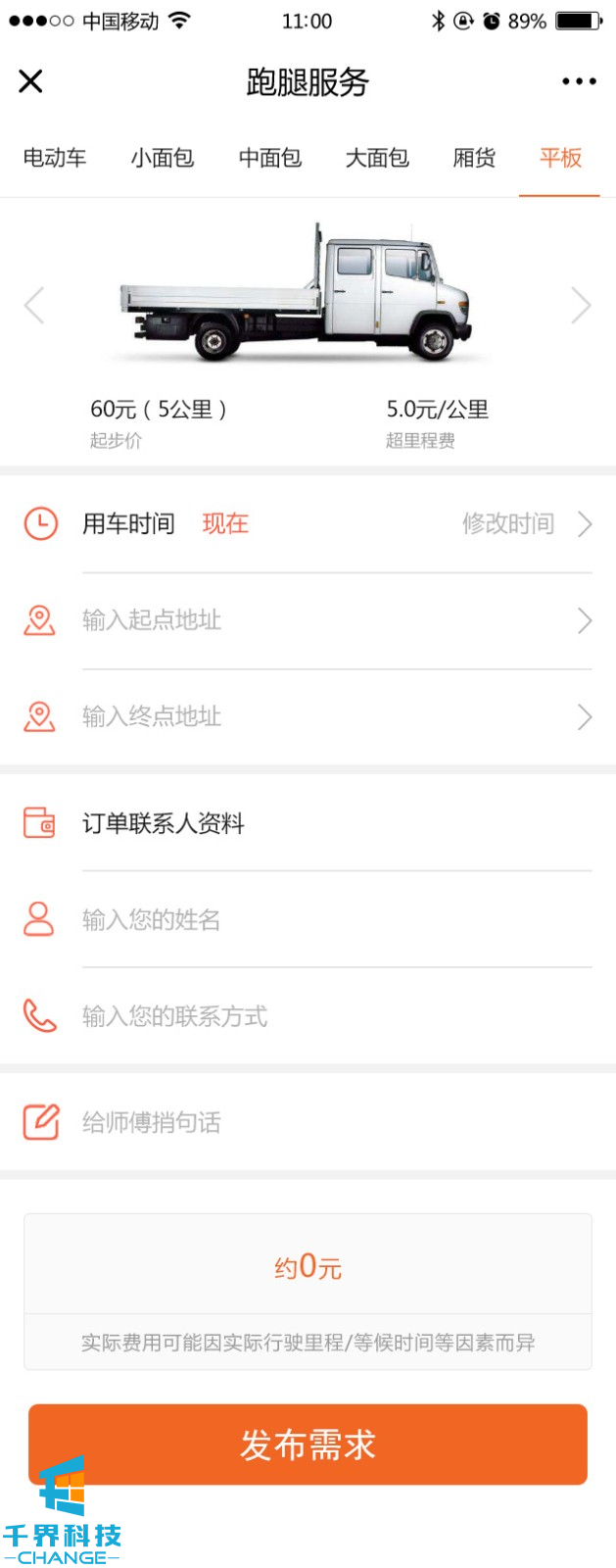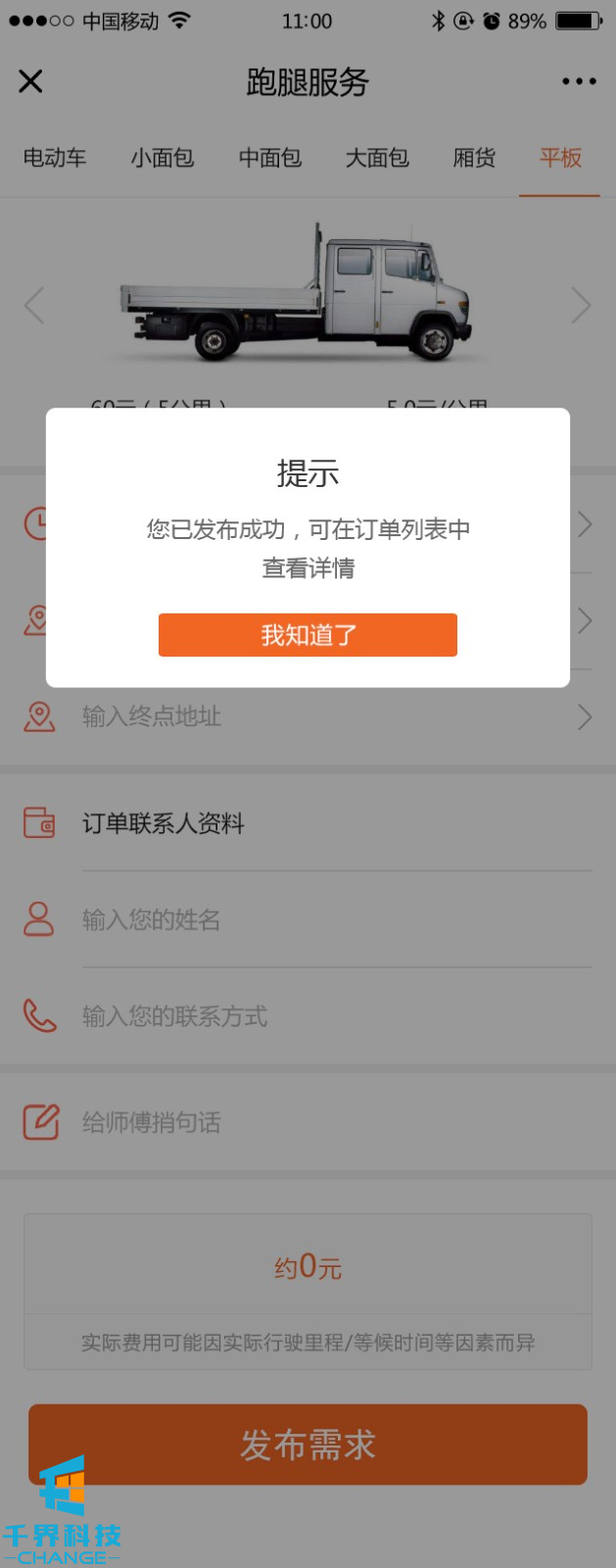 該項目是一個類似貨拉拉的線上跑腿平臺。里面包含用戶下單,車型選擇,距離計算,在線支付,跑腿員搶單,訂單跟蹤等功能。