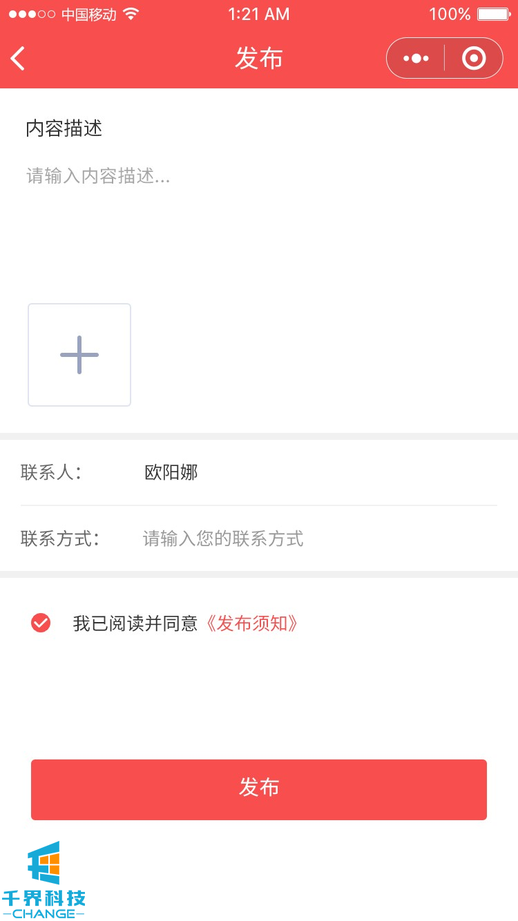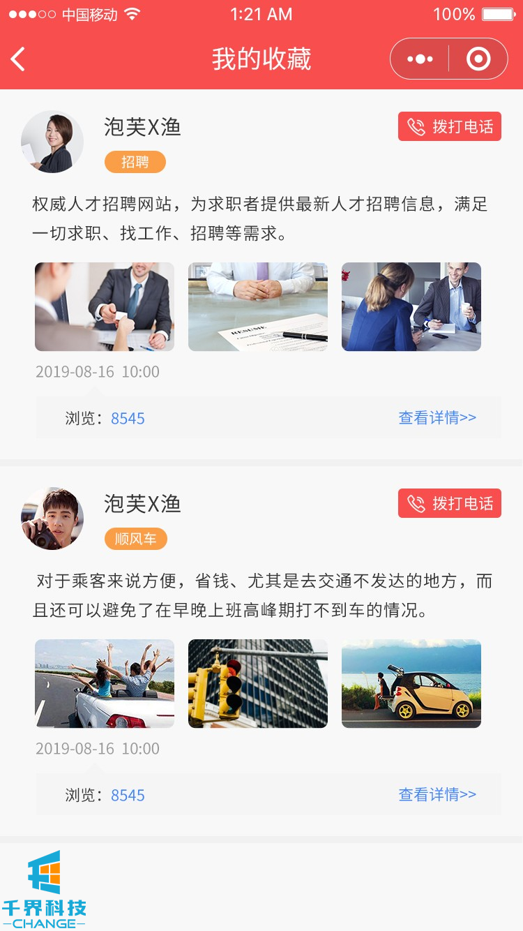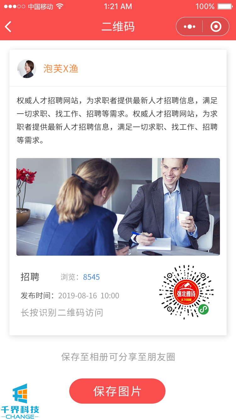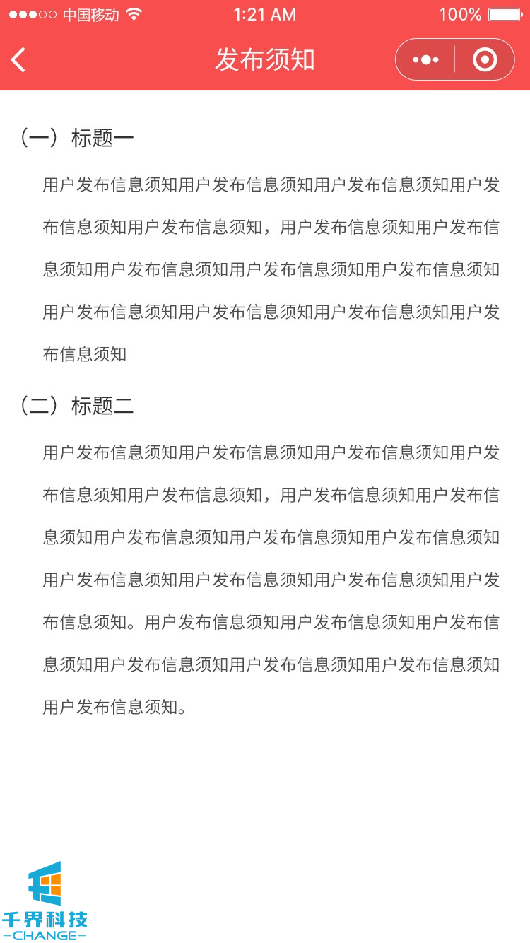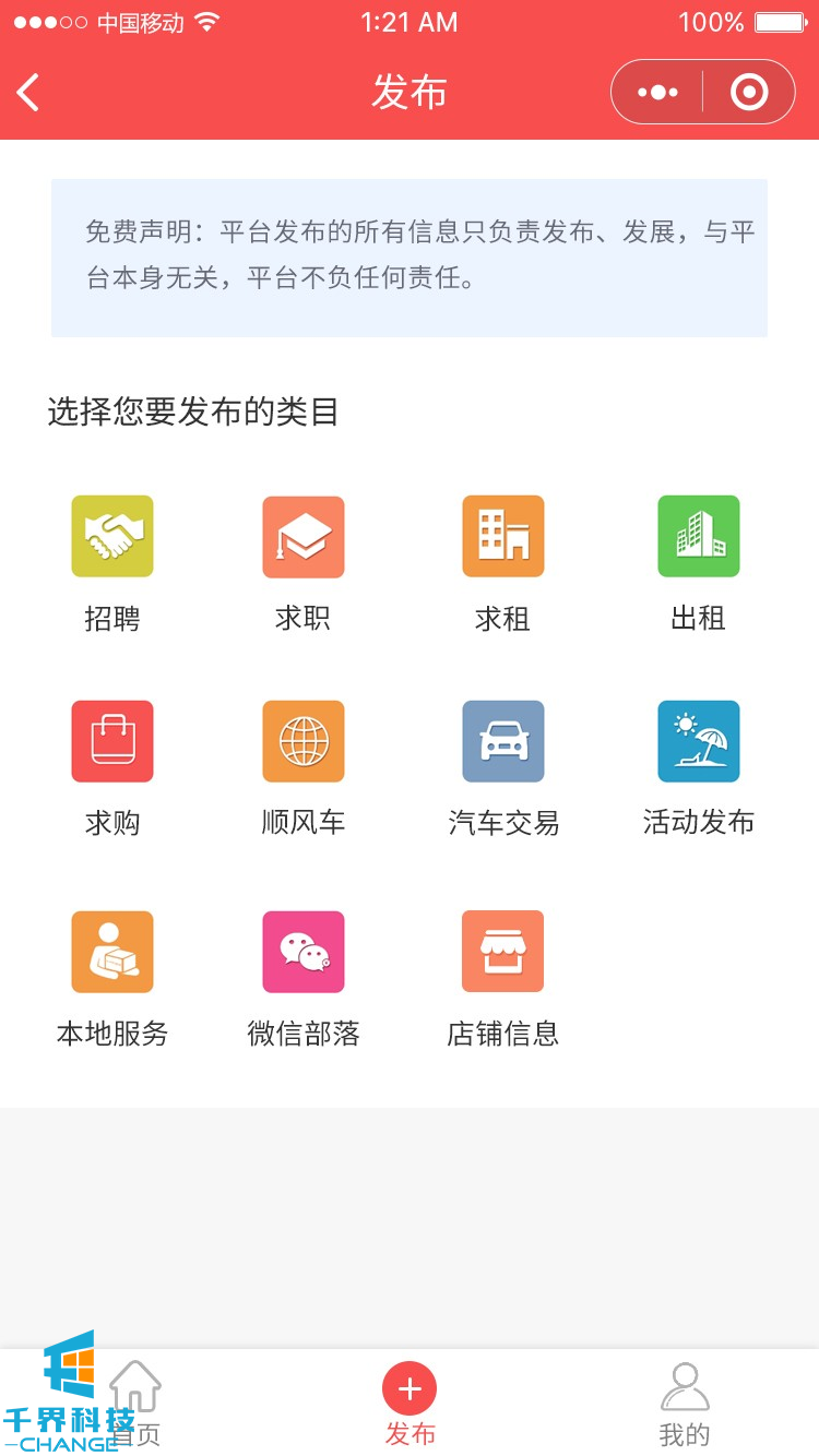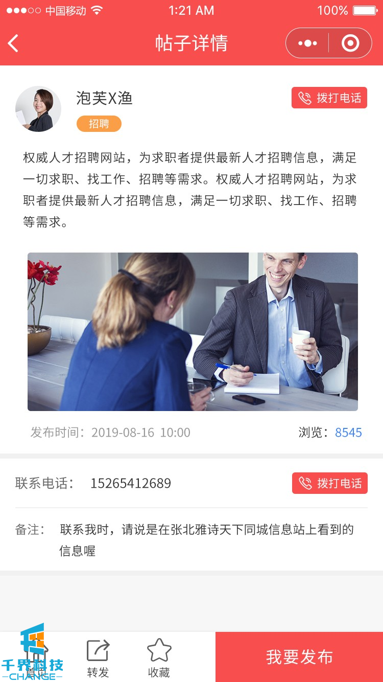 項目名稱:張北同城雅詩天下信息站 項目類型:小程序