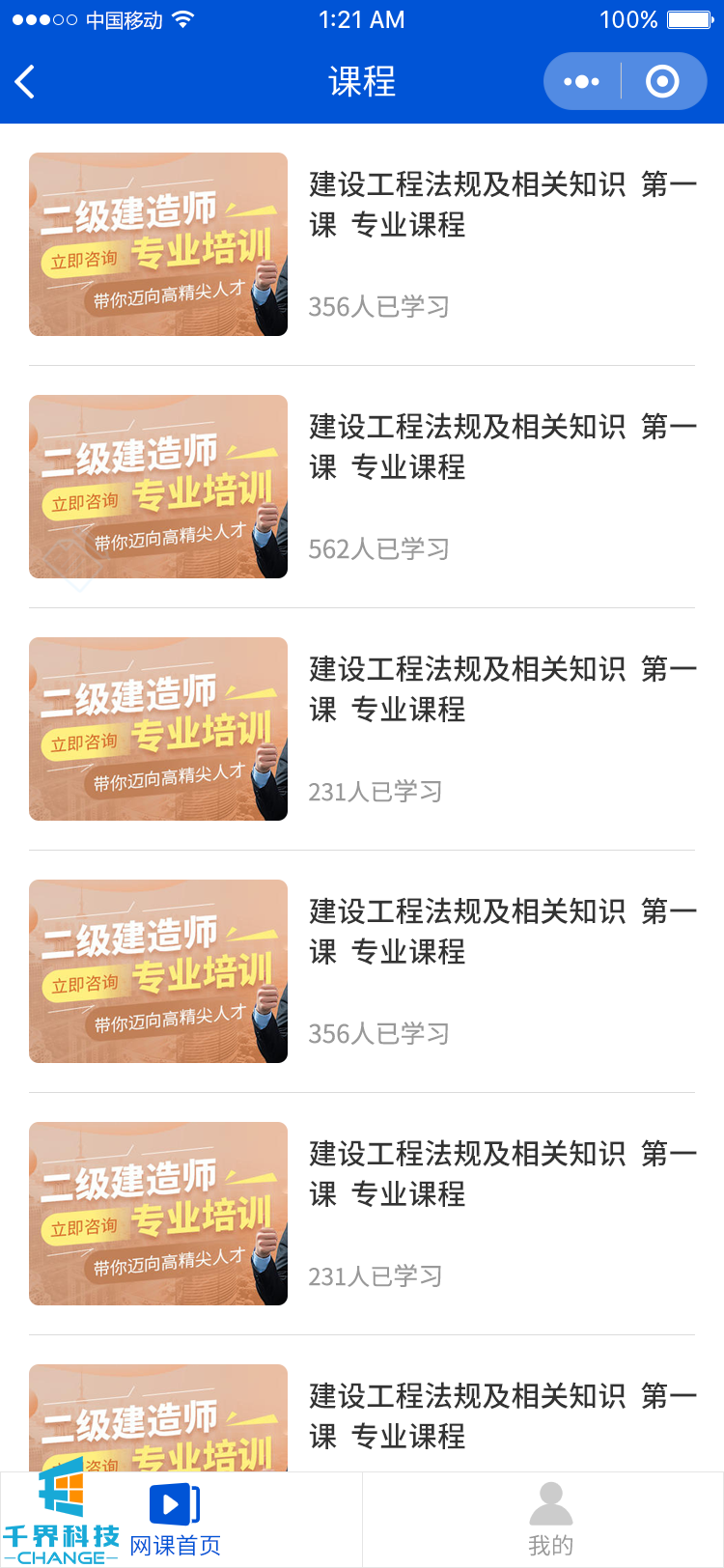 建筑類考試+網課培訓小程序