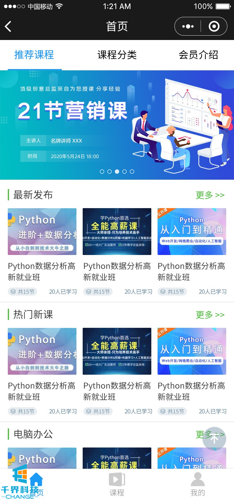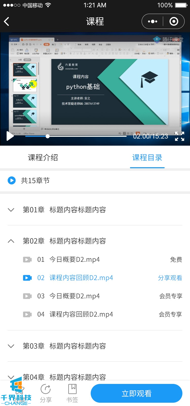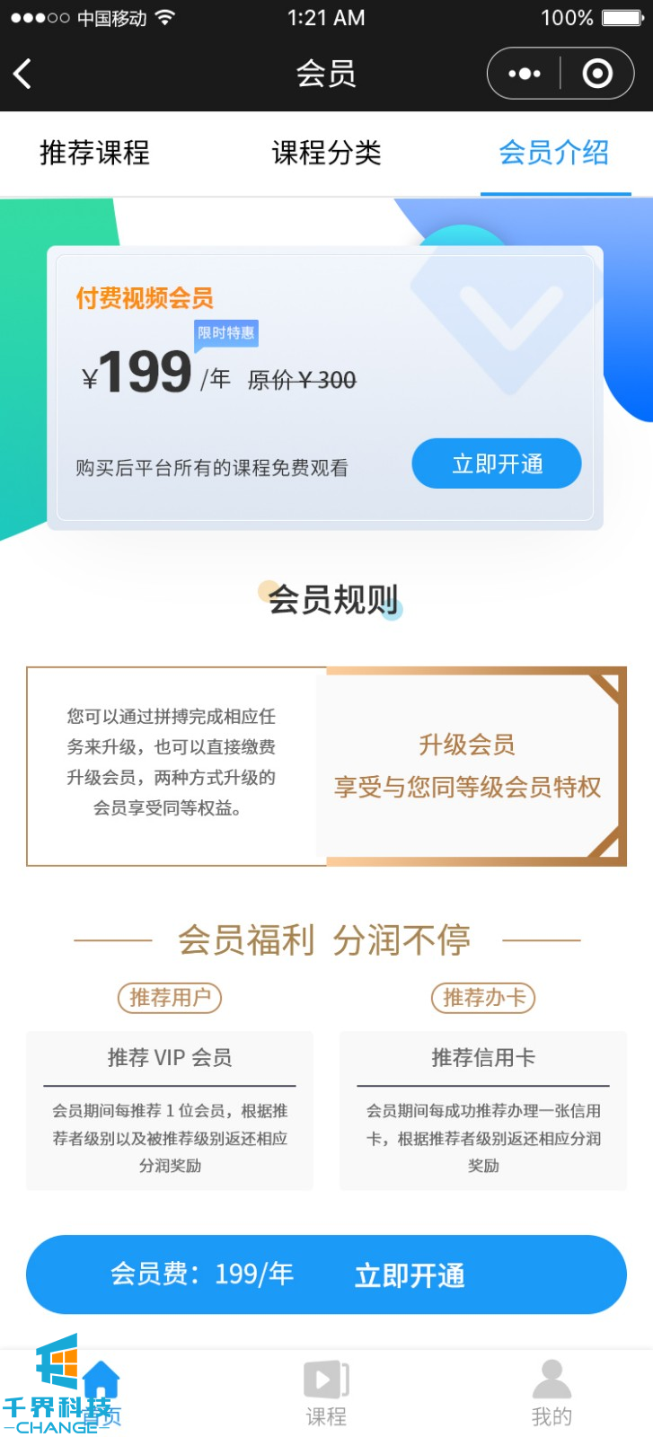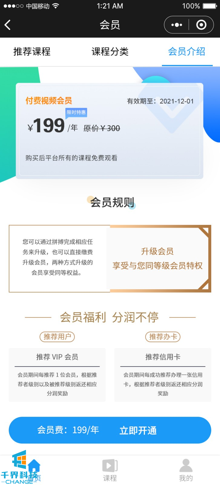 該項目為付費看視頻公眾號 ,包含在線課程、會員、章節、在線支付等功能