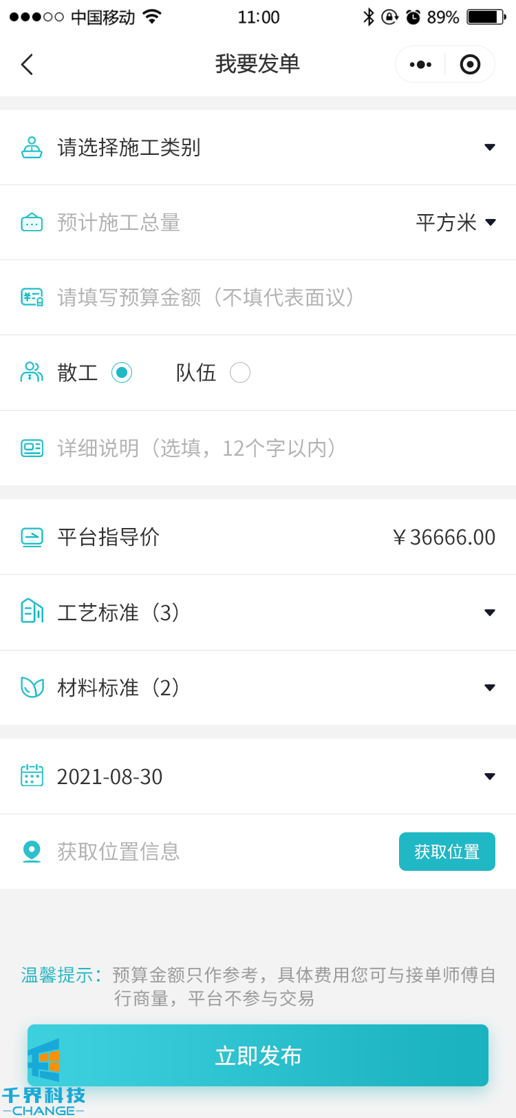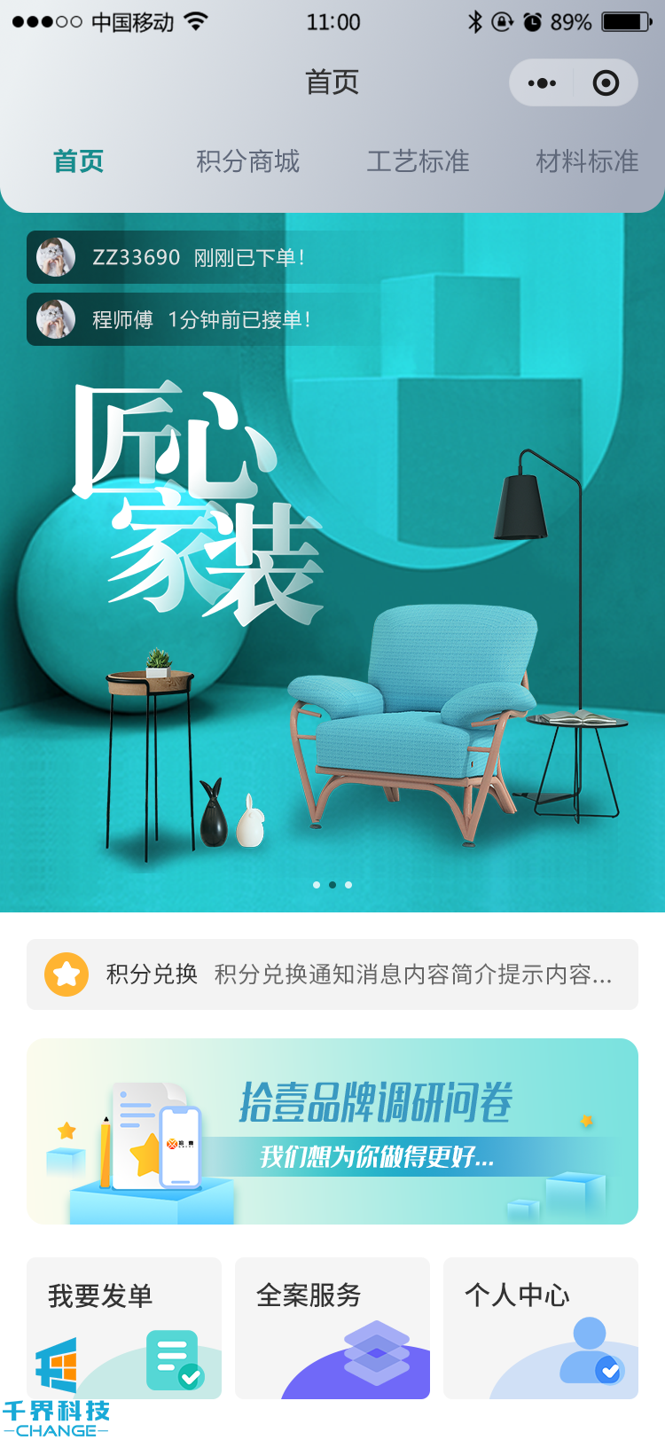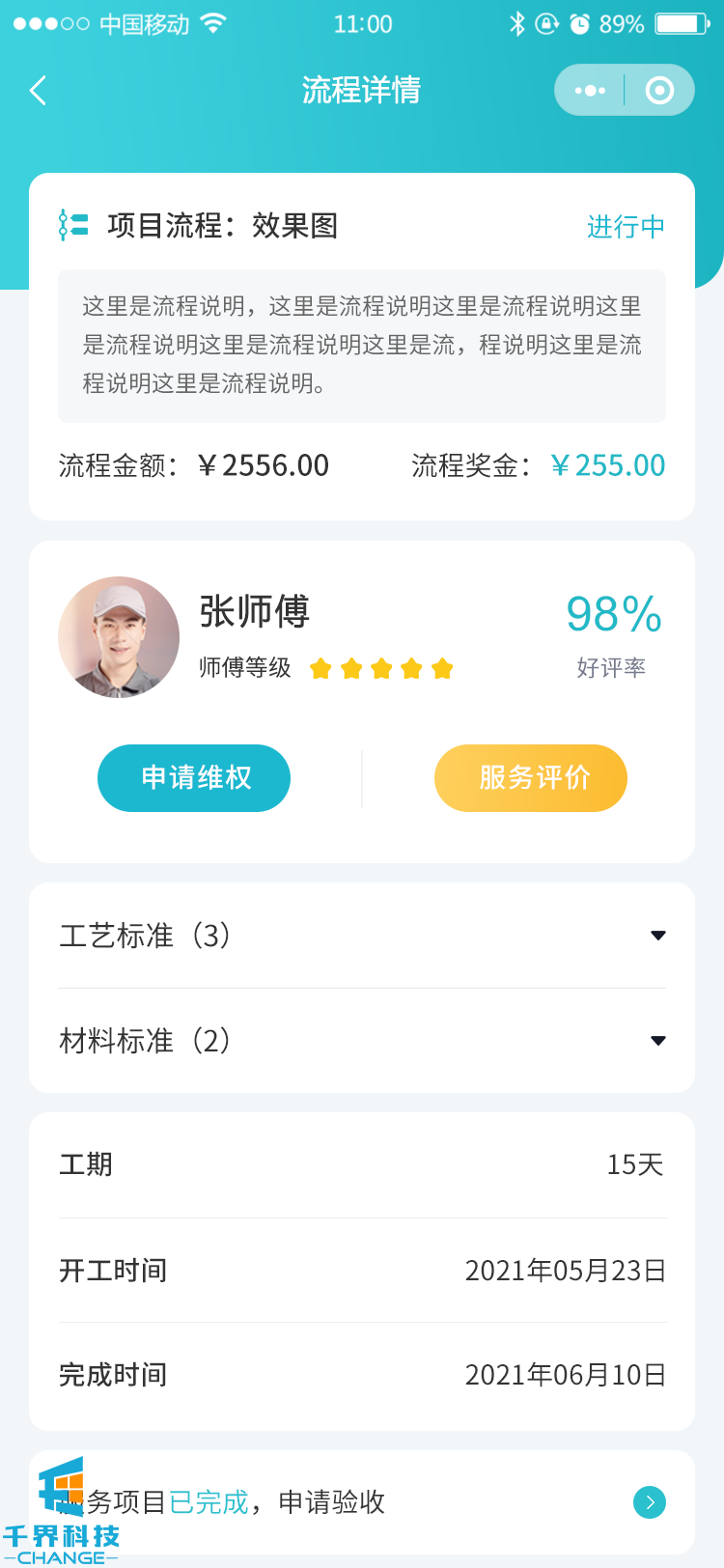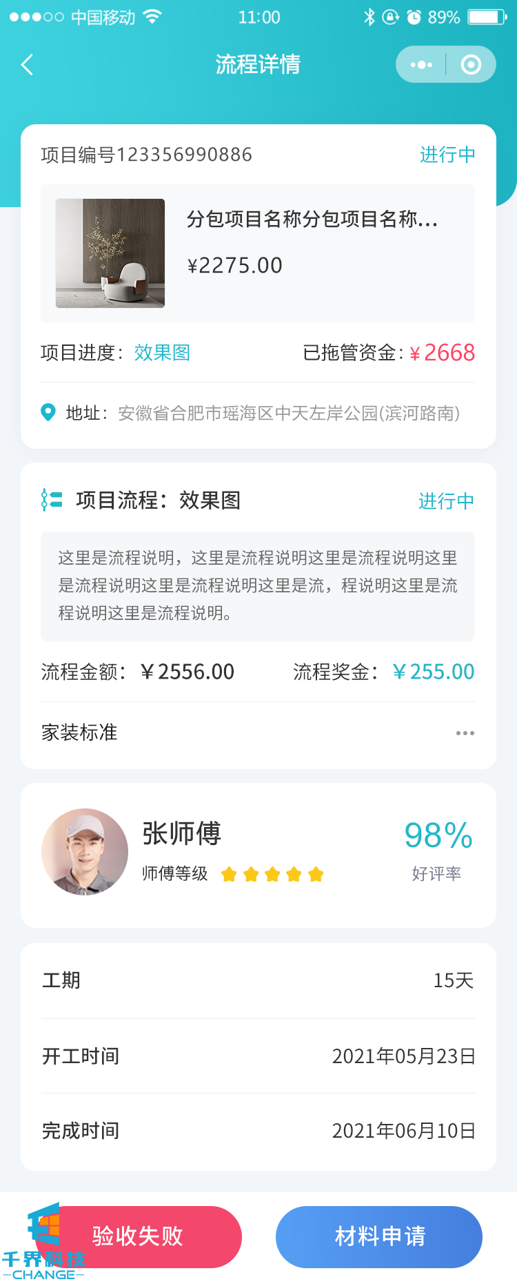 該項目一個家裝小程序,平臺有分包和整包,分包是用戶在前端下單,對應的師傅進行接單,整包是后臺進行發包,每個節點的師傅相應的報名接單