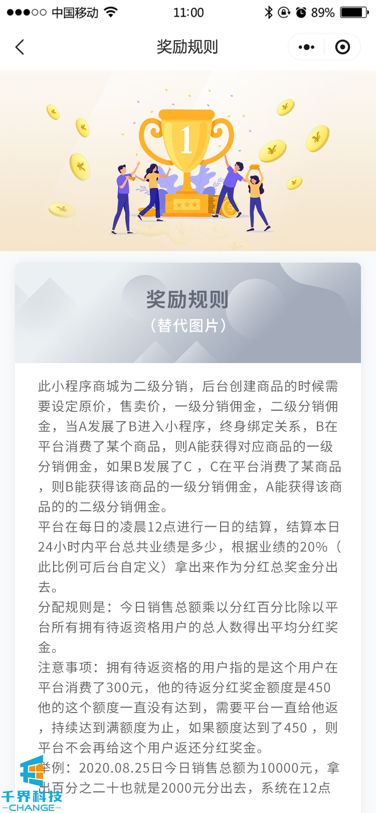商城有2種分銷,一種為購買商品的常規分銷,一種為購買的會員的多層級分銷,有級差、層級獎勵等功能