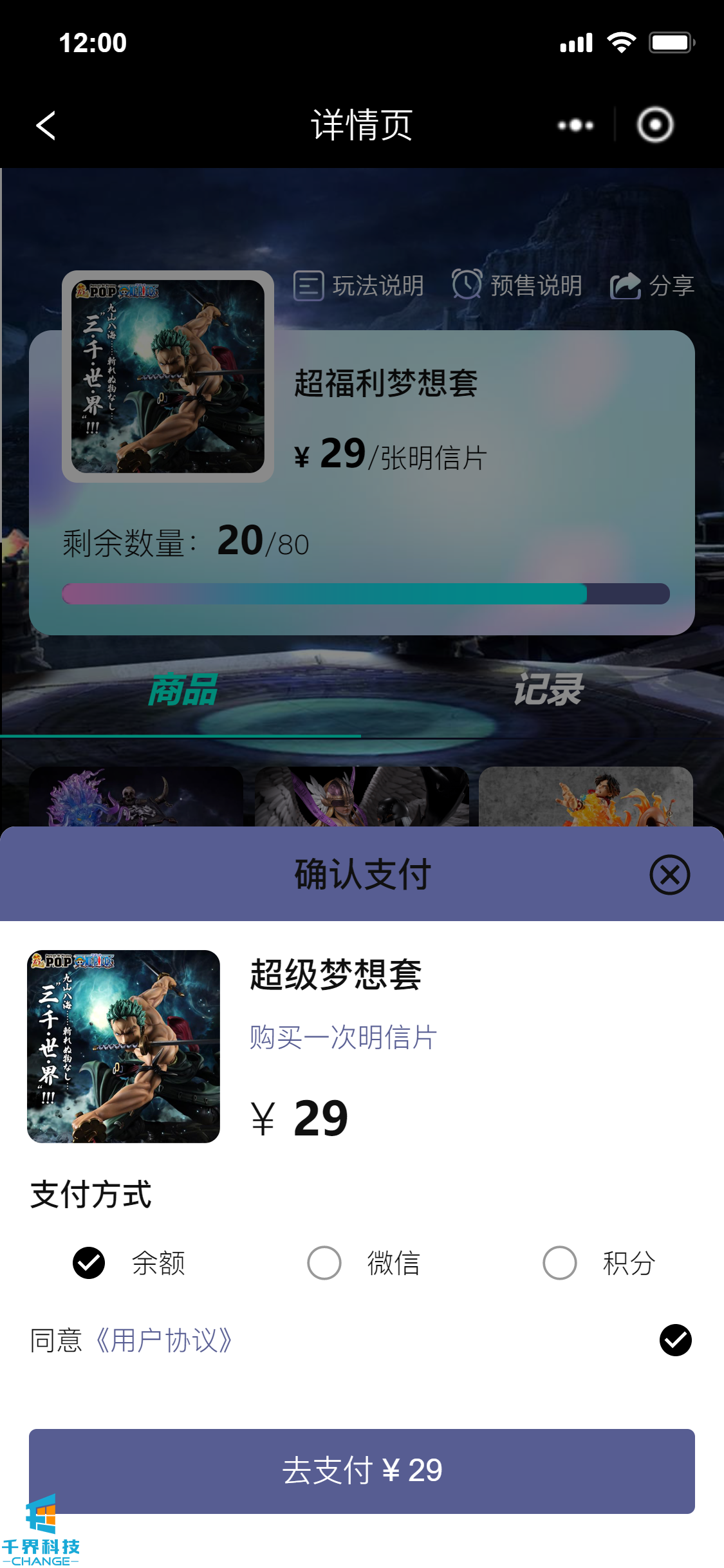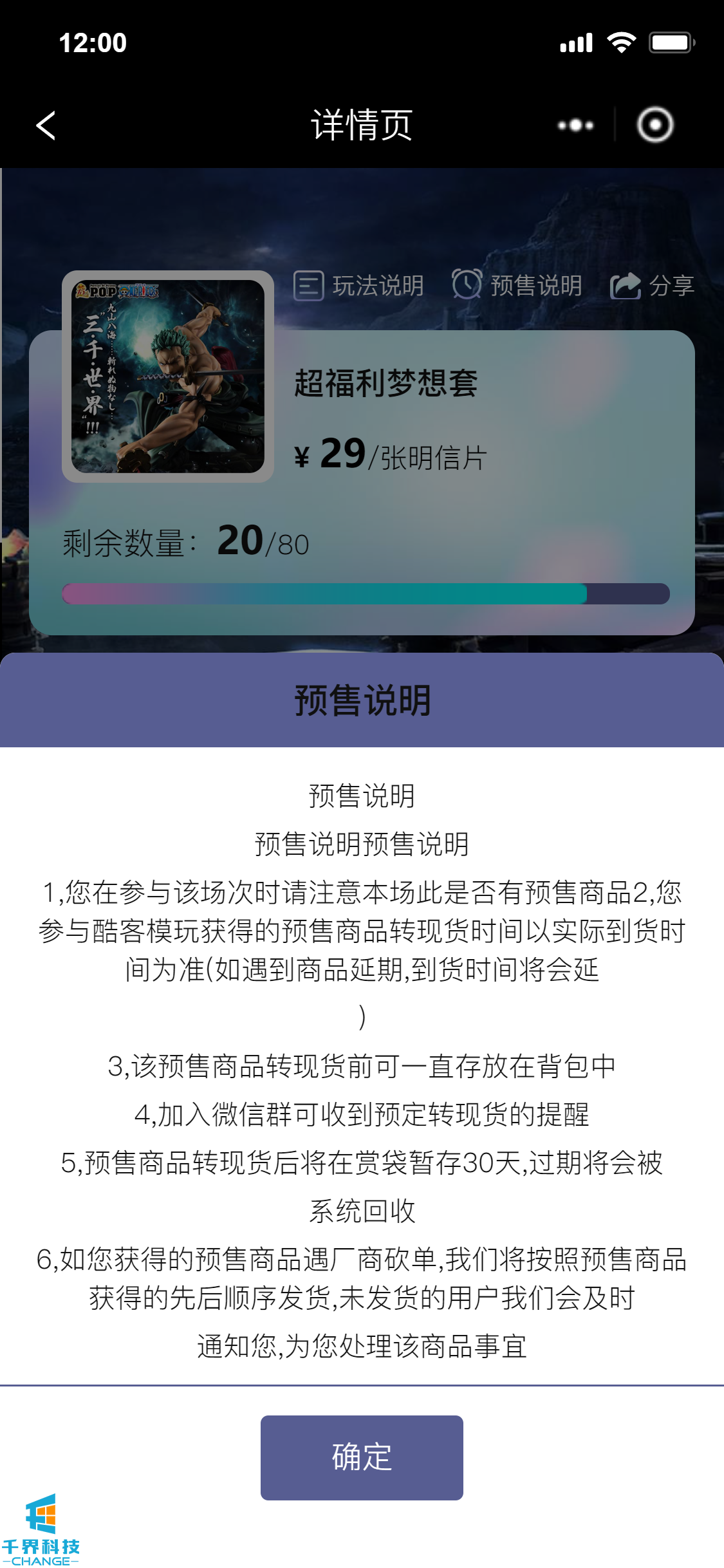 該項目是一個盲盒抽獎小程序,后臺可以創建多個抽獎活動配可以配置獎品數量,用戶付費進行抽獎并有幾率獲得額外附贈賞