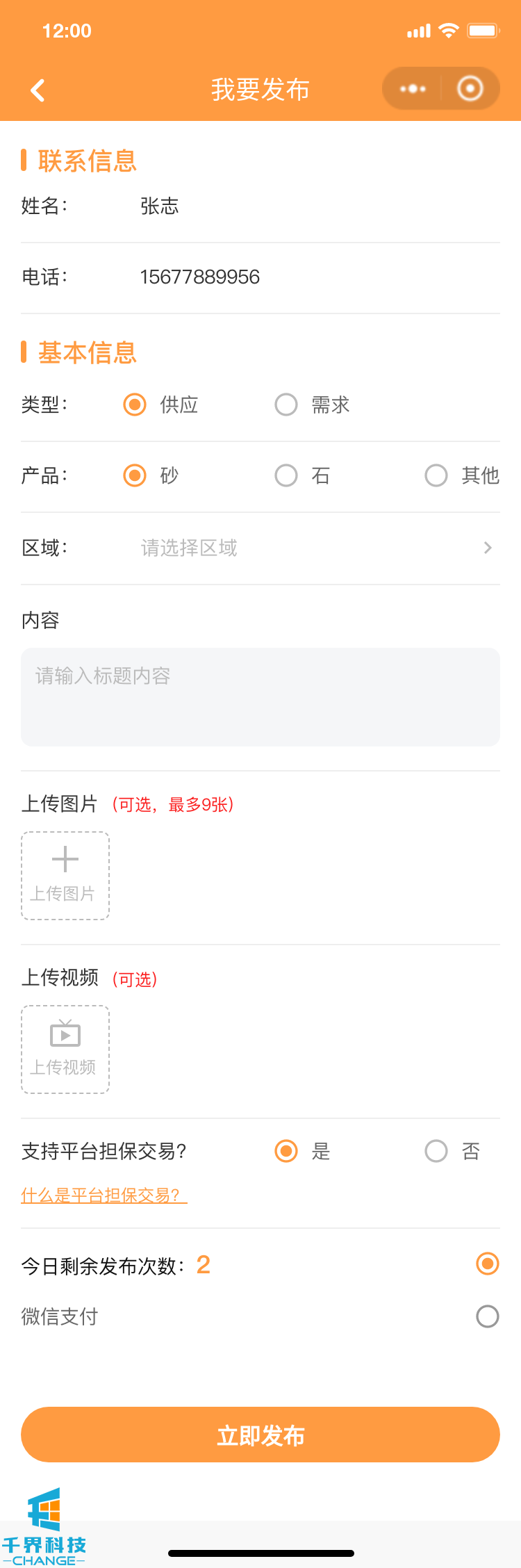 項目名稱:砂石供需平臺小程序 項目類型:小程序
