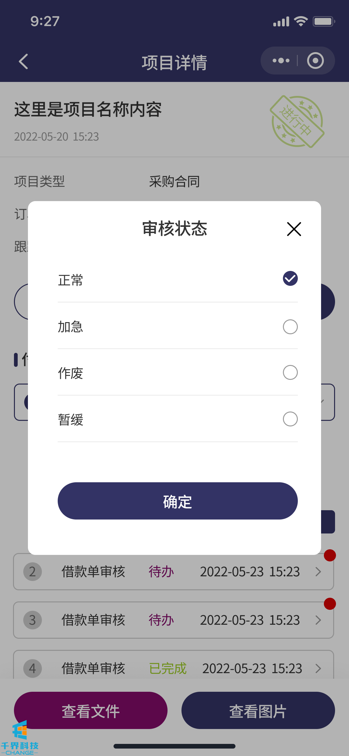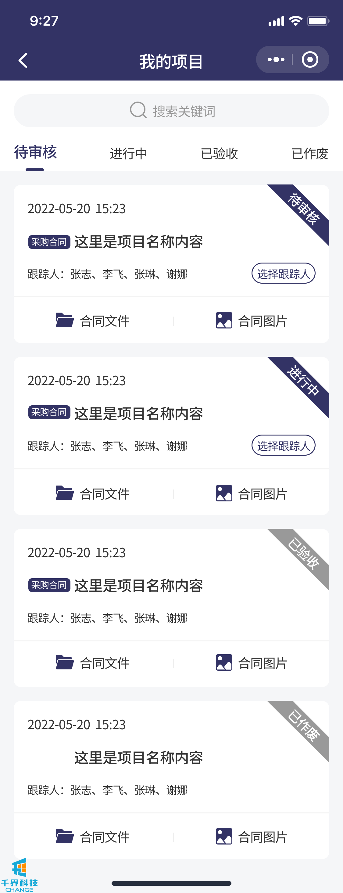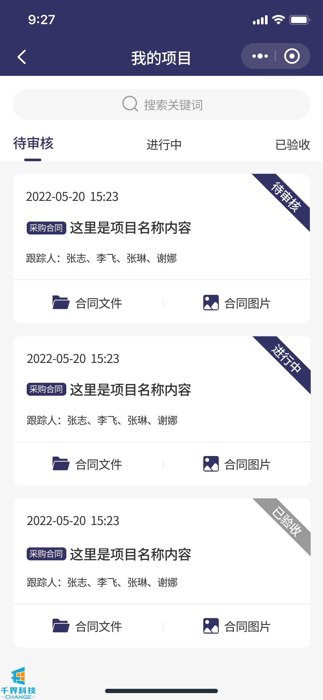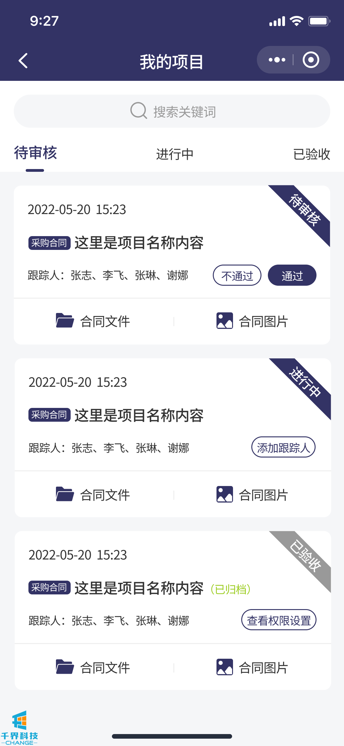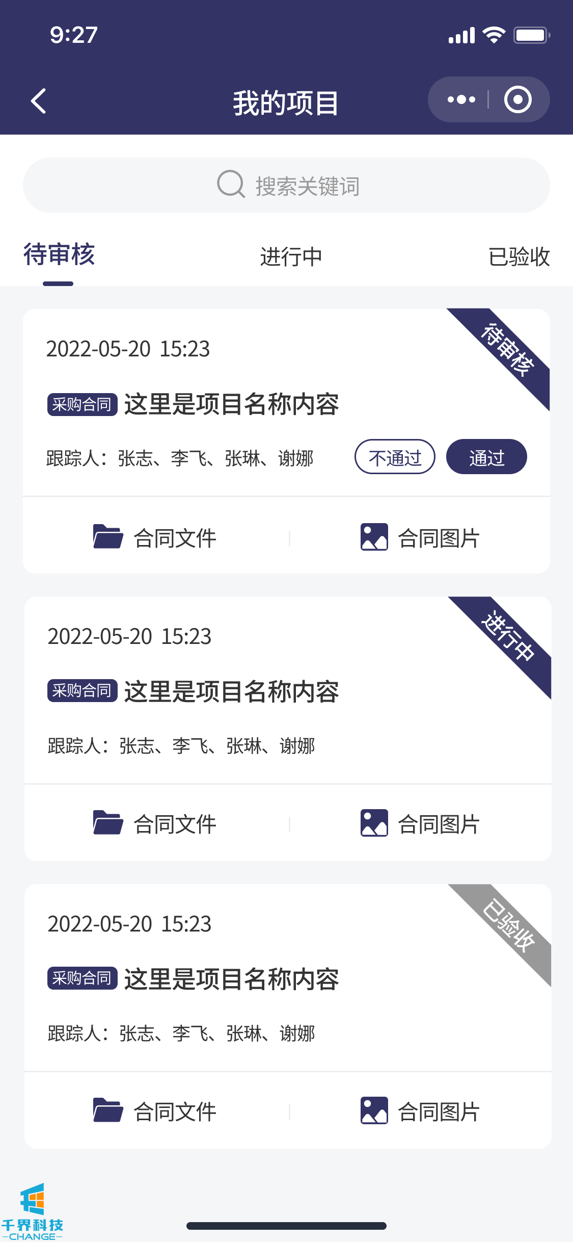 該項目是一個解決企業內部付款審批流程的線上程序。包含了負責人,法務,領導,驗收人員,財務,出納。根據設定的流程依次審批。可以實現多合同,多次付款審批,每次付款記錄多角色審核明細等