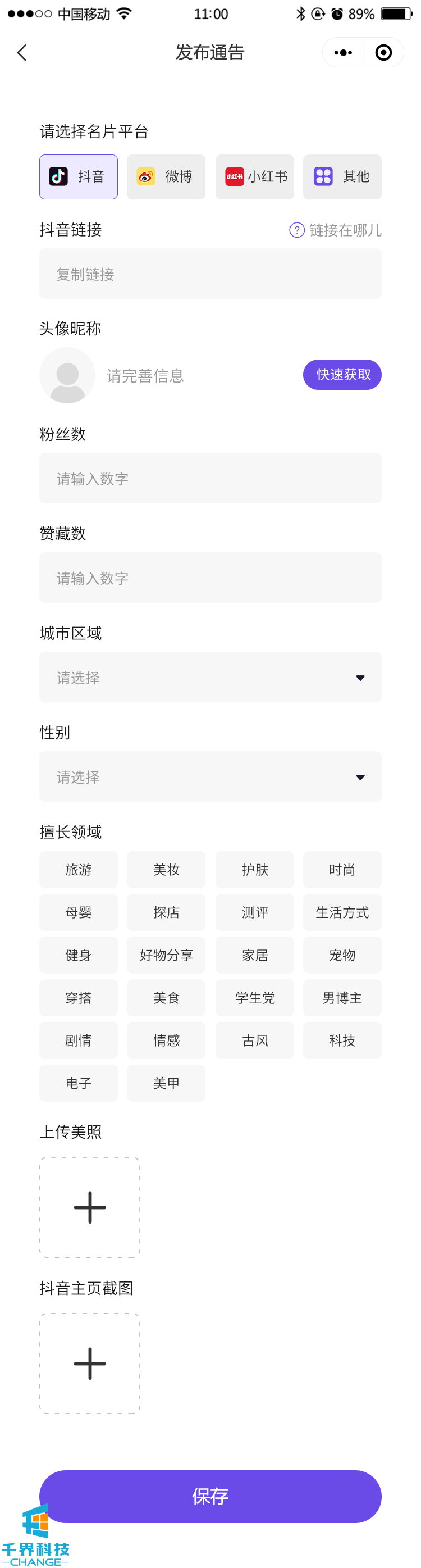 該項目是一個通告發布接單平臺,用戶可以在平臺進行發布通告,接單者可以在平臺認證不同領域的博主身份,認證通過之后可以進行接單