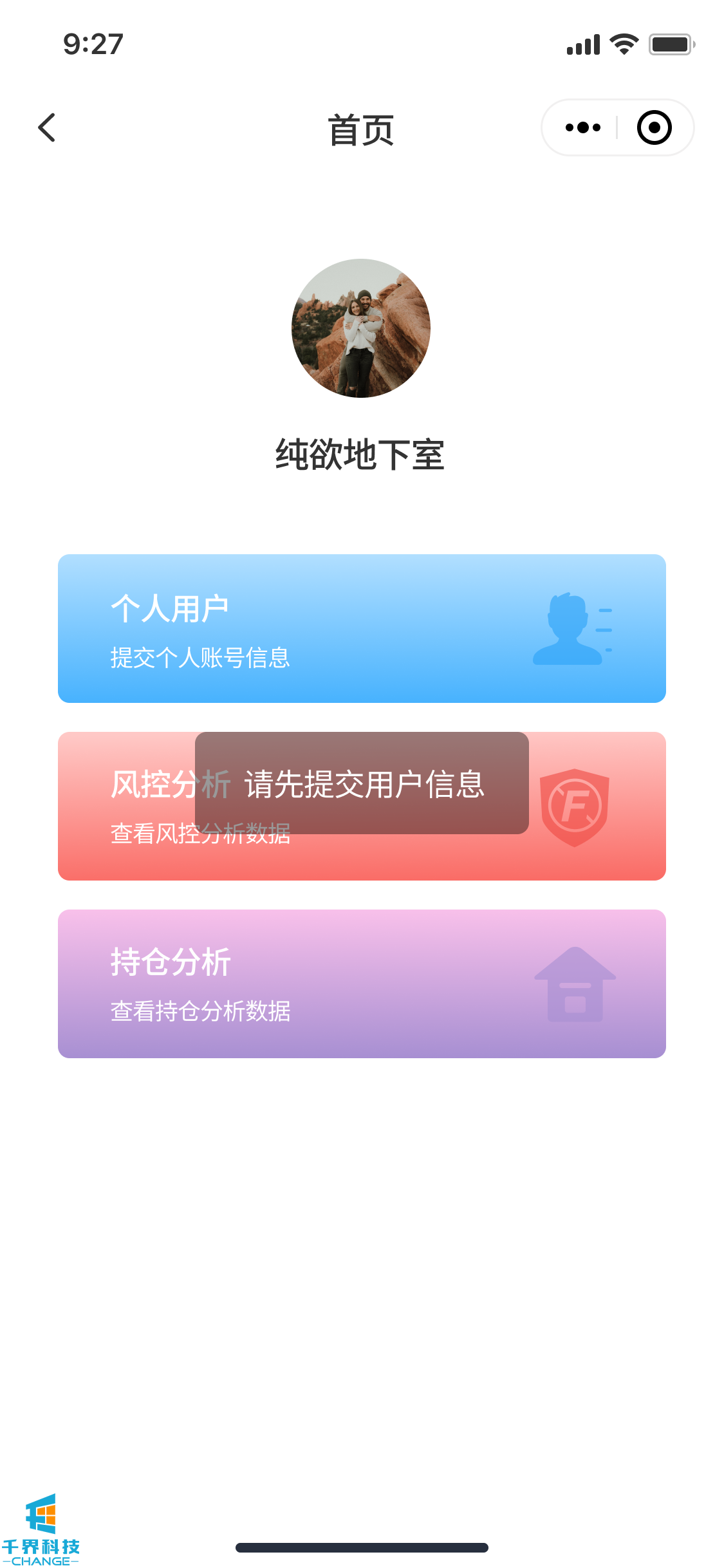 該項目是一個基金賬號管理以及售后的系統。線上收集基金賬戶,后臺審核。給予內部客戶提供風控分析,持倉分析信息的小程序。