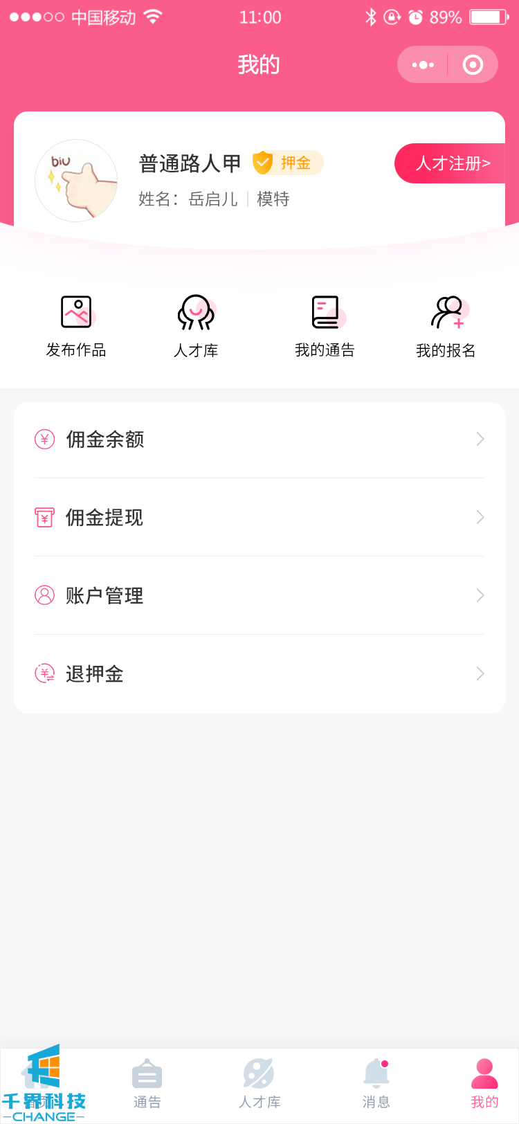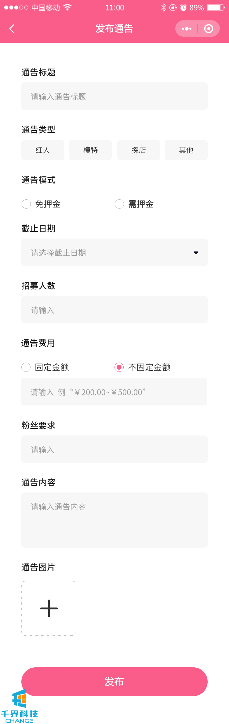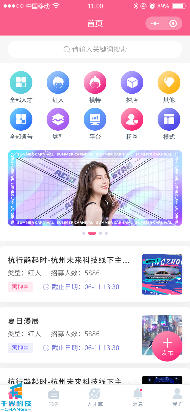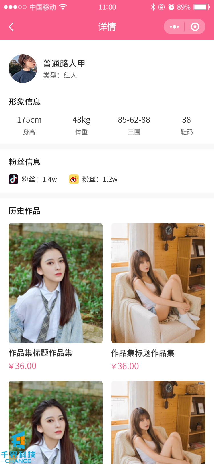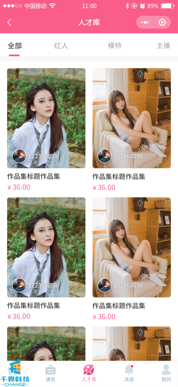 該項目結合人才模特,商家等角色。商家可以發布通告尋找人才提供拍攝服務。人才可以通過發布自己的作品增加曝光,類似種草類型的項目。主要解決商家和人才模特的資源共享。功能有發布通告,人才注冊,發布作品等