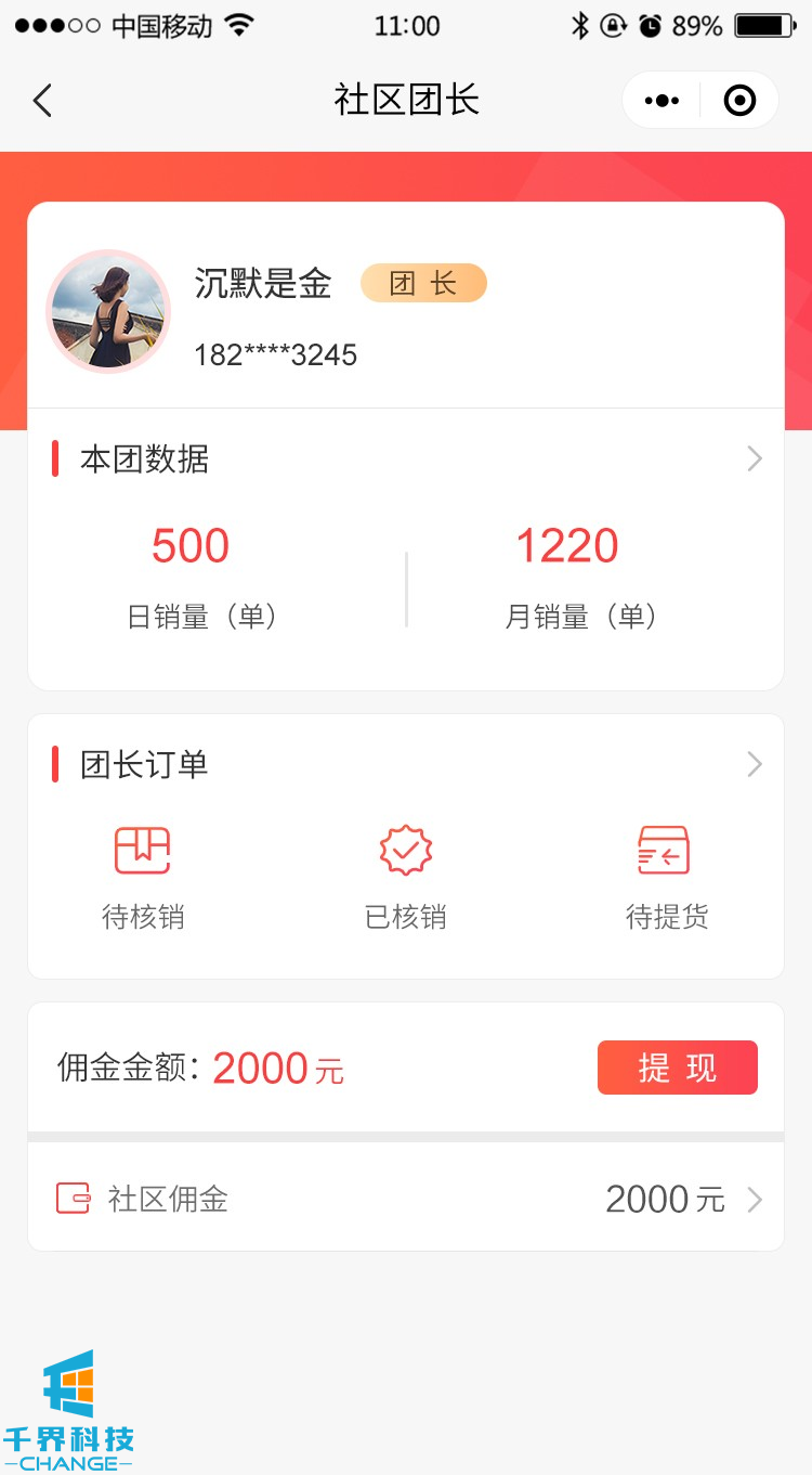 該項目是一個社區團購小程序,用戶可以申請注冊社區,成為社區團長核銷有傭金。并且平臺含有層級分銷關系
