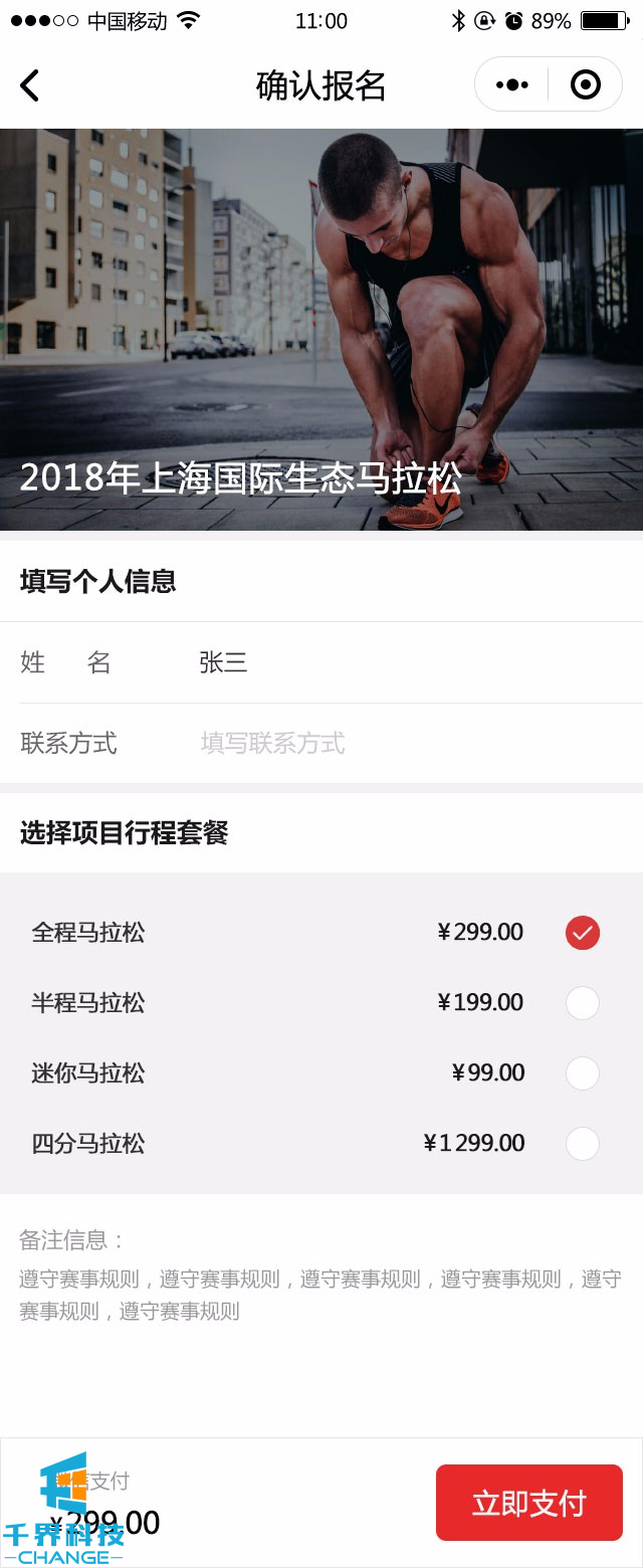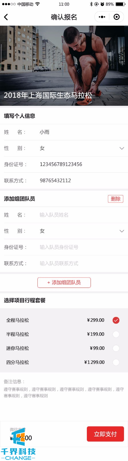 該項目是馬拉松比賽的報名小程序,包含在線報名、在線支付、團隊報名等