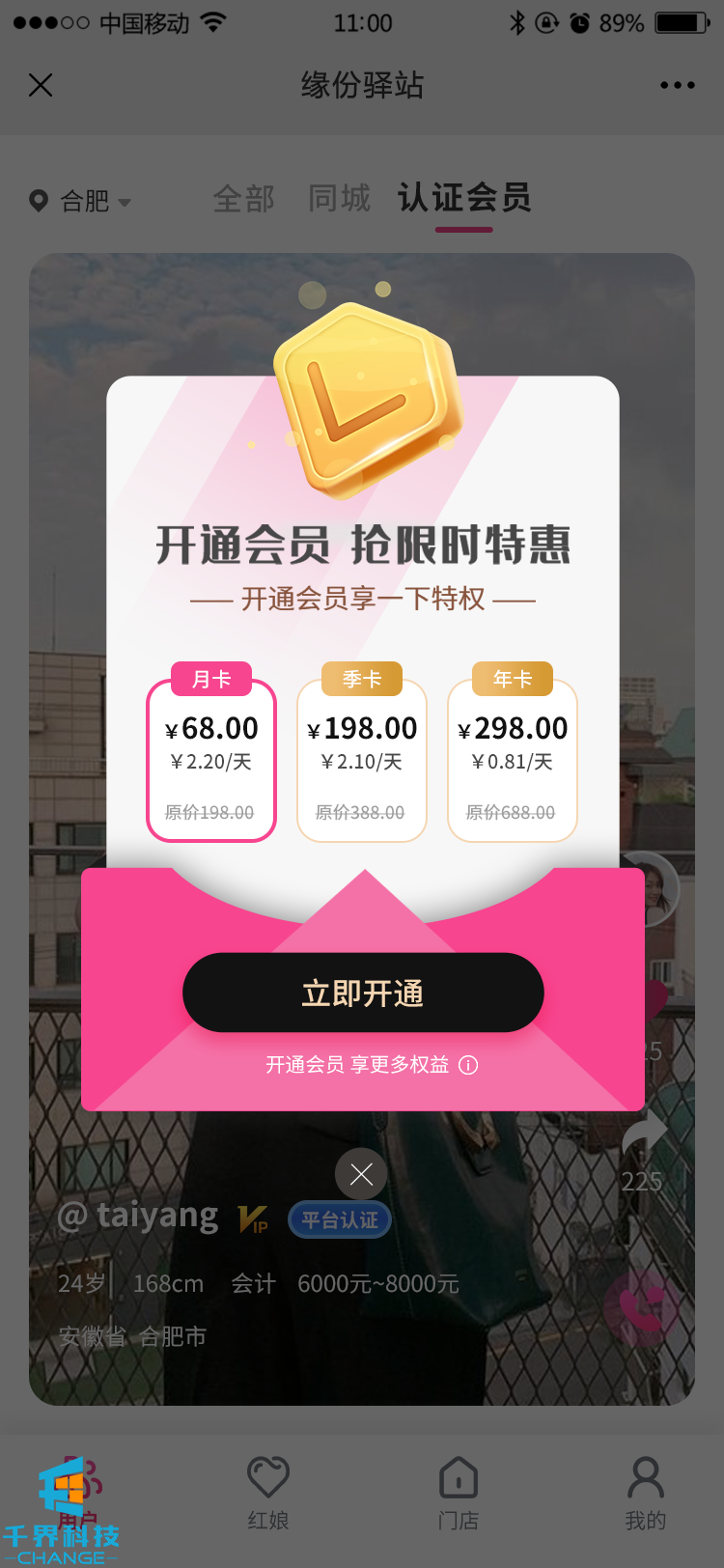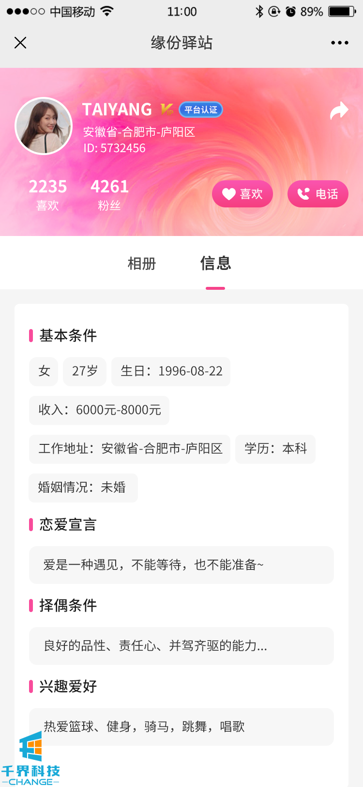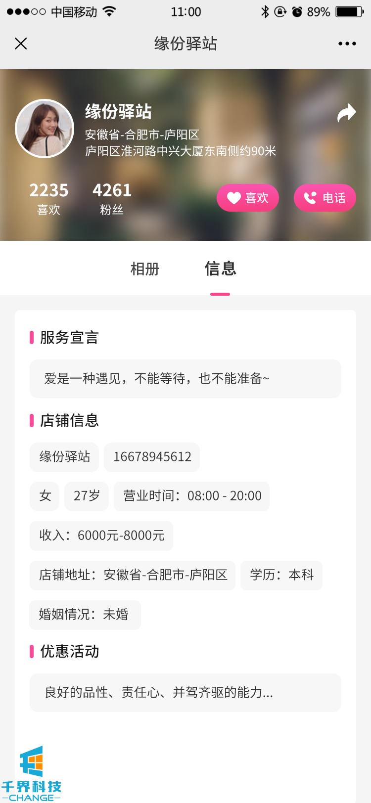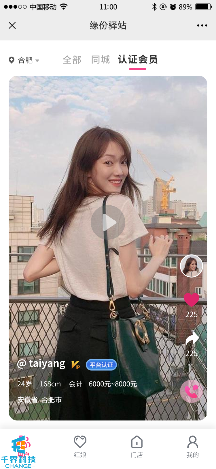 該項目是以抖音瀏覽的形式用戶注冊后查看其他相親對象的資料,有圖片,短視頻的形式展現(xiàn),平臺有會員,紅娘注冊,視頻認(rèn)證等服務(wù),門店可以申請注冊開店,代理商分潤等功能