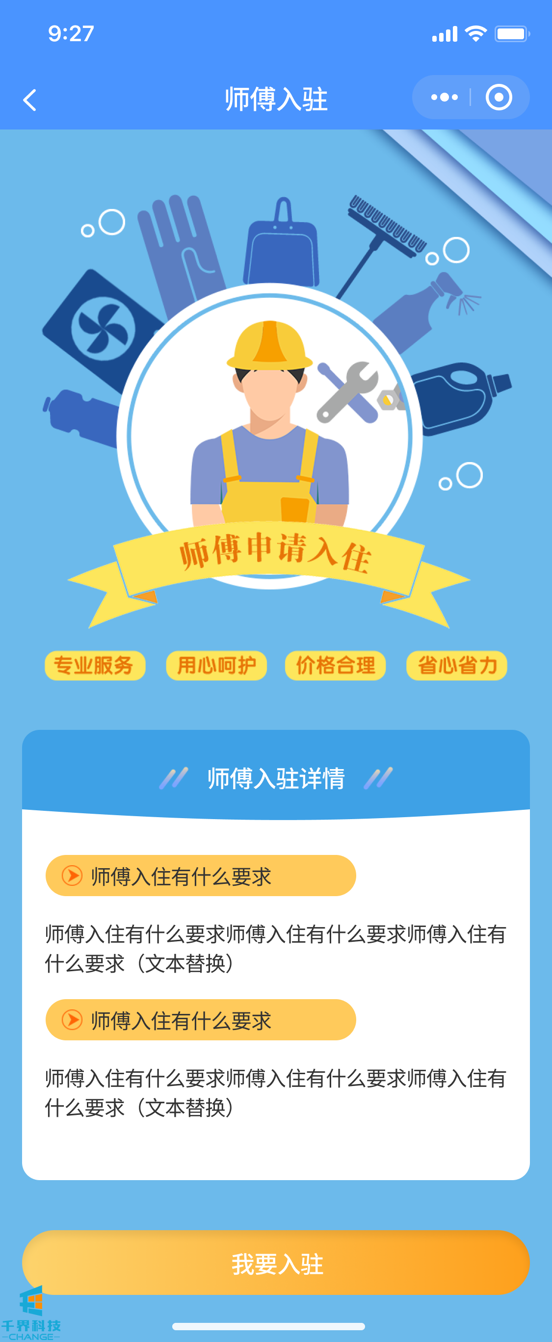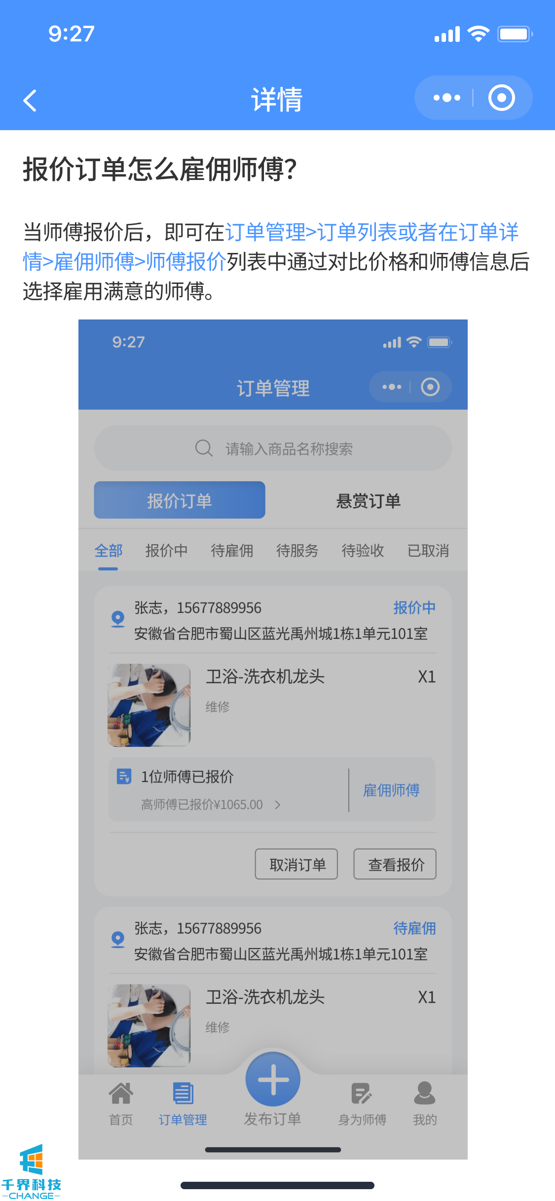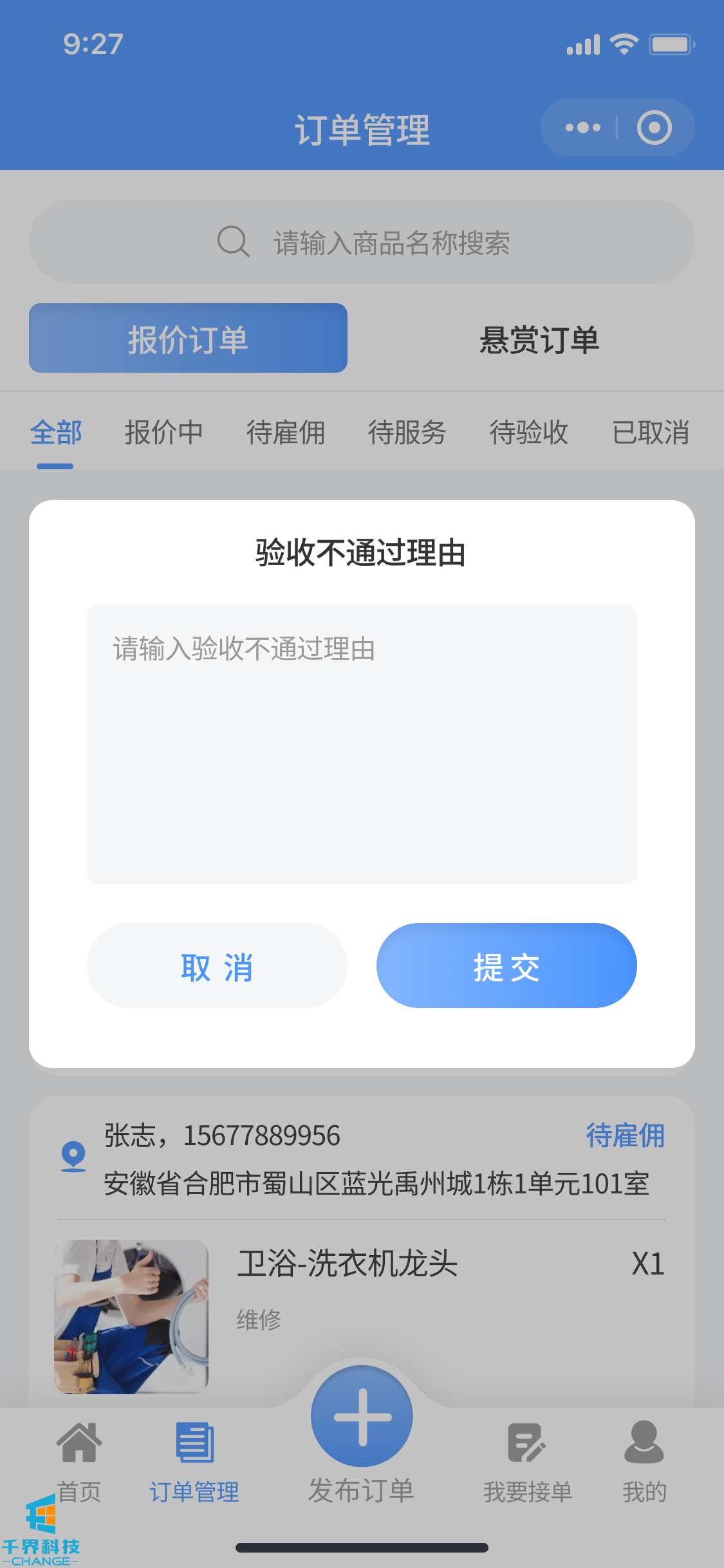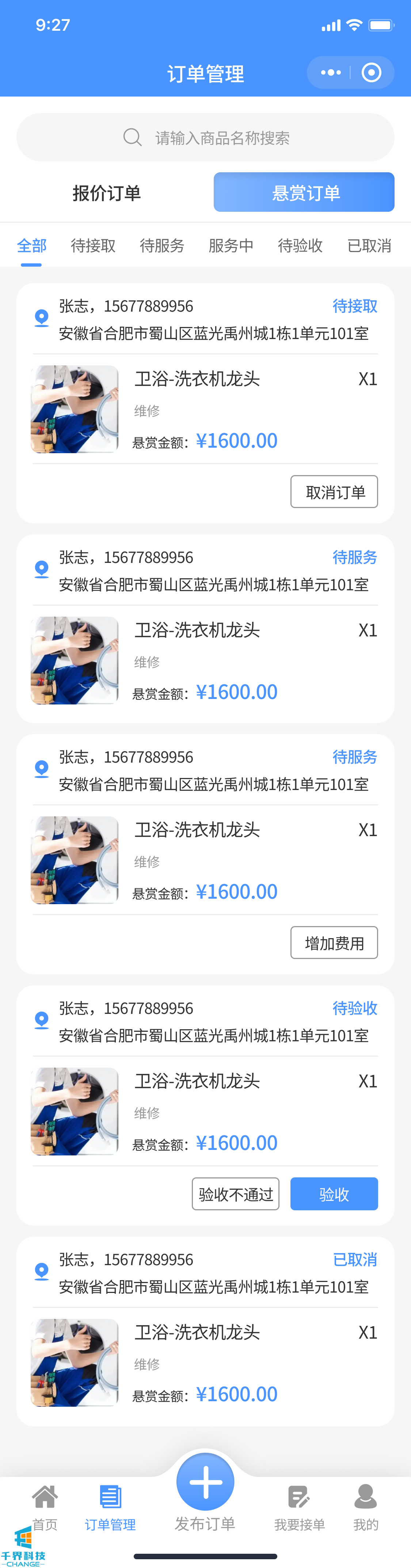 該項目是一個多城市地區的服務眾包平臺,用戶可以通過該小程序發布一些家政、維修等相關任務,任務發布有兩種形式一種是讓師傅報價一種是自己報價讓師傅接單。師傅端可以通過小程序進行接單或報價。其中帶有對應的分銷邏輯。