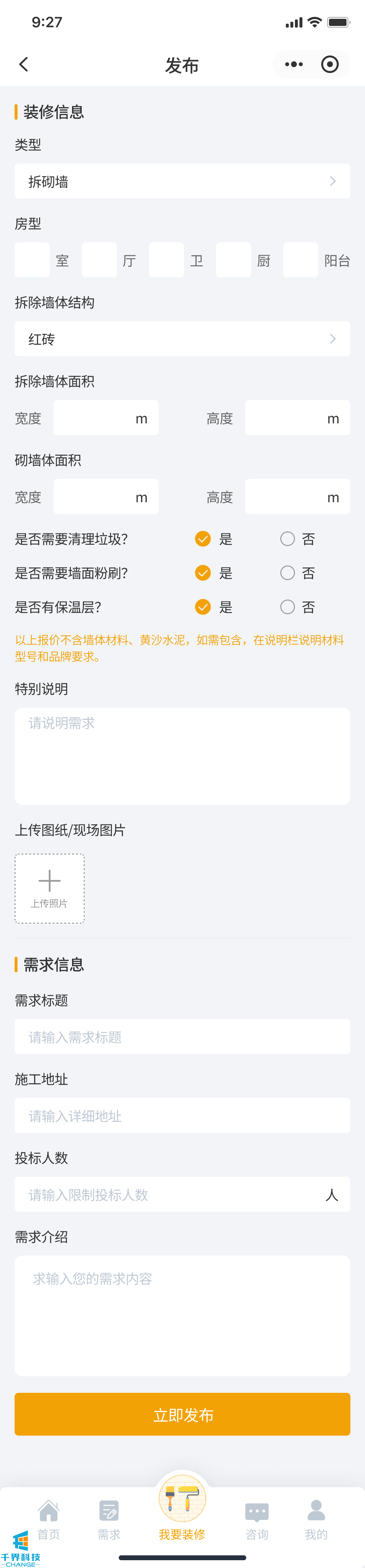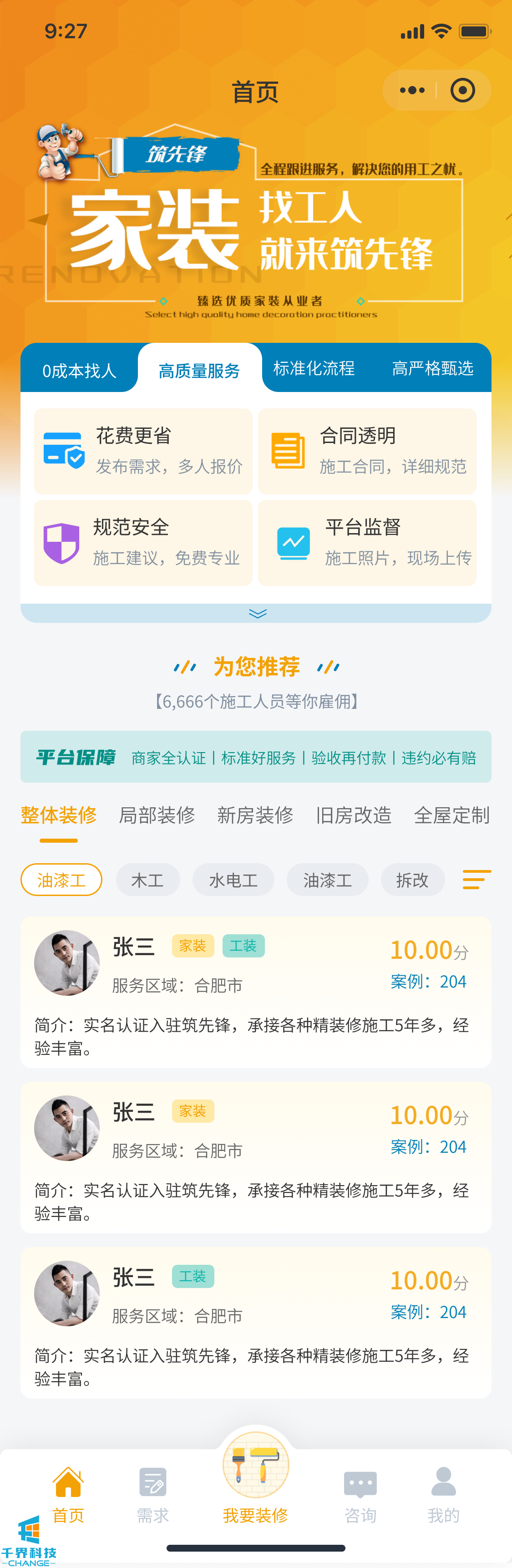 項目名稱:裝修小程序 項目類型:小程序