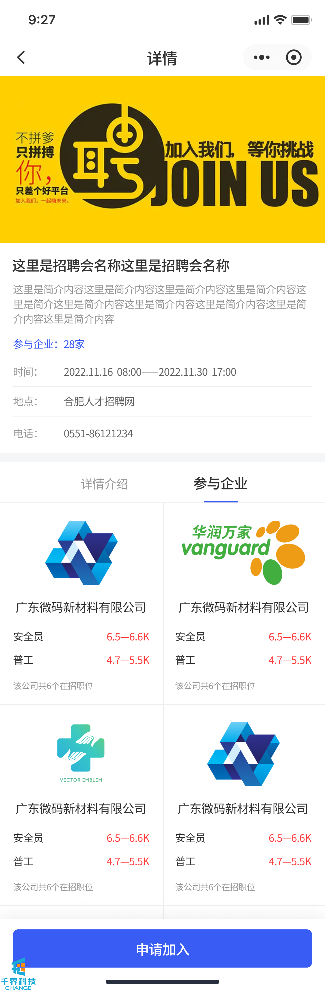 該項目是一個招聘小程序,包含用戶端、企業端(PC+小程序),用戶創建簡歷投遞簡歷,企業入駐發布招聘職位要邀請面試等等