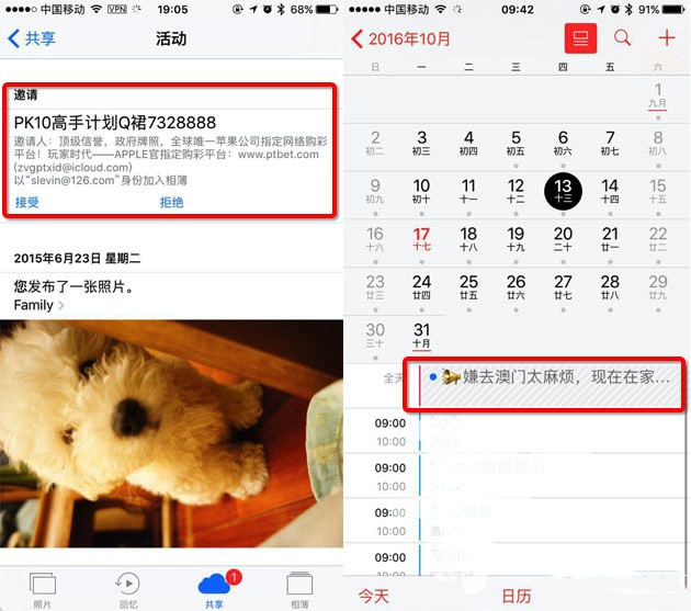 所謂“iCloud垃圾日歷邀請”是指,一些不法分子利用蘋果手機或電腦系統(tǒng)中可以通過日歷邀請其他用戶的特性,大規(guī)模在邀請中發(fā)送廣告的行為。除了日歷,這種垃圾還可通過相冊共享,提醒事項邀請。這好比有人知道了你家地址,一直往門里塞小廣告,無論你收到或是扔出來(接受或拒接邀請),他們都能確定家里有人,進而更精準地的塞廣告。