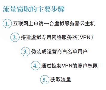 但這樣的方式卻被不法商販利用變成了謀取利益的工具。據技術人員介紹,流量販賣者只需要在互聯網上申請一臺 VPS云主機,搭建虛擬專用網絡服務器(VPN),再通過并不復雜的偽裝,就可以讓運營商認為,這個VPN請求的流量都來自于運營商的免流量網站。這樣,他們控制的VPN流量就變成了由運營商買單。其后,通過控制VPN的賬戶權限,流量倒賣者就可以將運營商的“免費流量”低價賣給用戶。