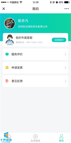 | 2.我的專屬客服:專屬客服電話展示,點擊可一鍵撥號 | ||