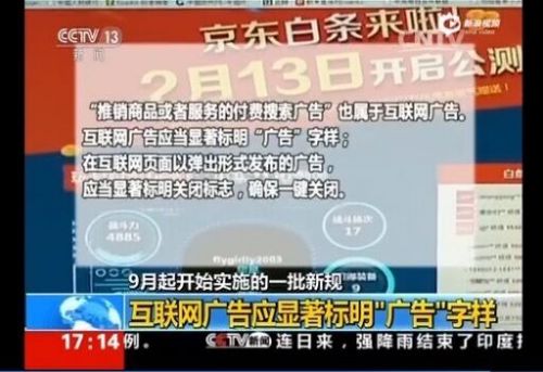 9月1日起,由國家工商總局發布的《互聯網廣告管理暫行辦法》將正式生效。辦法明確界定了互聯網廣告,要求互聯網廣告應當具有可識別性,在顯著位置標明“廣告”字樣。